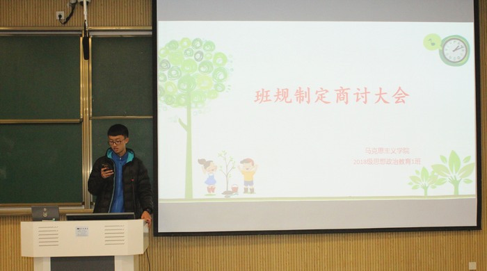 为增强同学们的纪律意识,提升班级事务管理水平,11月16日下午,sjb世俱杯网站2018级思想政治教育一班班委在教八楼顺利开展“班规制定商讨”会议。2018级思政一班全体团支部委员共同参加此次会议。会议由团支书靳雨露主持。