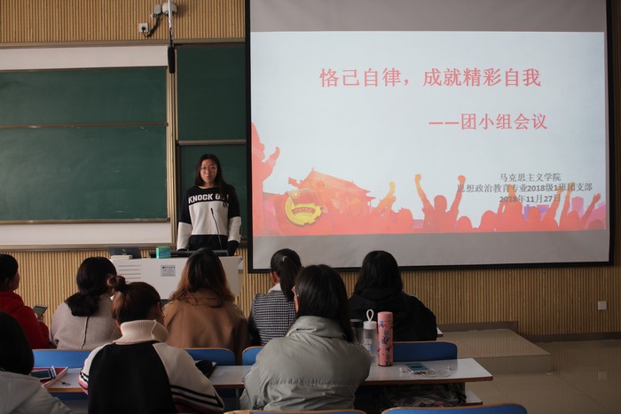 11月27日上午,世俱杯官网2018级第一团支部第二团小组在社科楼515教室顺利开展了“恪己自律,成就精彩自我”主题团会。第二团小组全体成员共同参加了此次团会。该团会由团小组成员王涵主持。