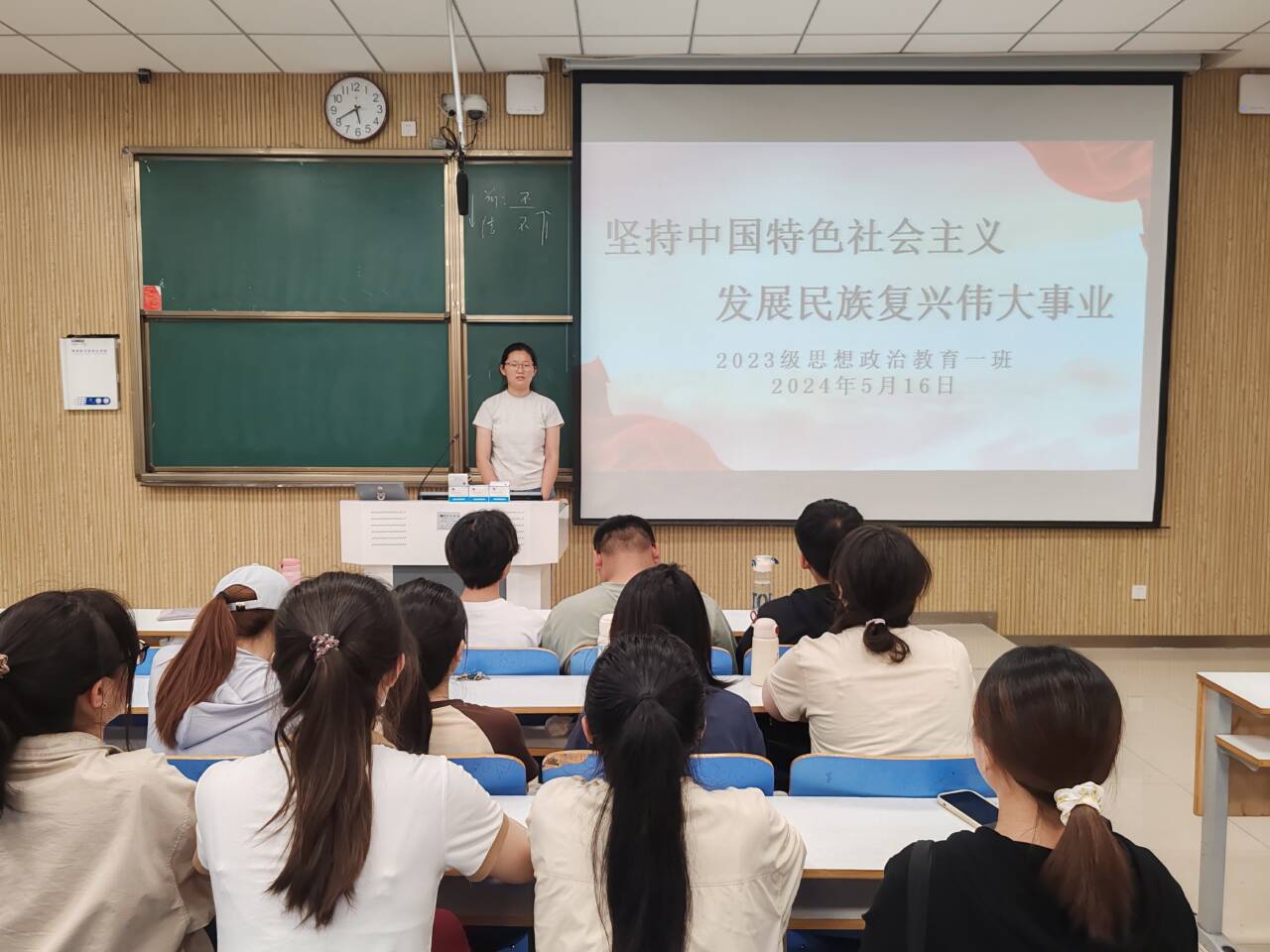 为响应习近平总书记对青年人的号召,进一步学习中国特色社会主义,5月16日下午,sjb世俱杯网站2023级思想政治教育一班在社科楼515教室召开“坚持中国特色社会主义,发展民族复兴伟大事业”主题团课。世俱杯官网2023级思想政治教育一班全体同学共同参与本次团课,团课由团支书张卓主持。