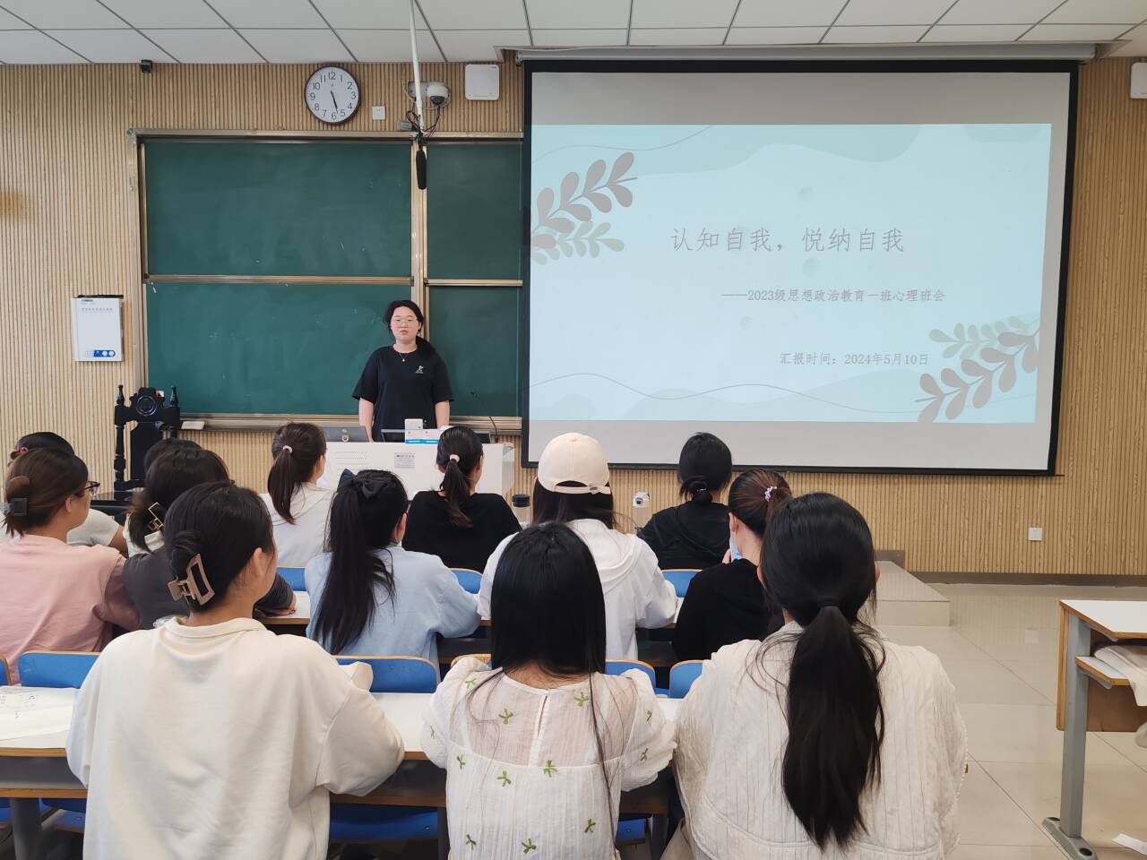 为进一步普及心理健康知识,提高我班学子的心理素质,促进学生身心健康发展,5月10日下午,sjb世俱杯网站2023级思想政治教育一班在社科楼515教室召开“认知自我,悦纳自我”心理班会。世俱杯官网2023级思想政治教育一班全体同学共同参与本次班会,班会由心理委员夏一萌主持。