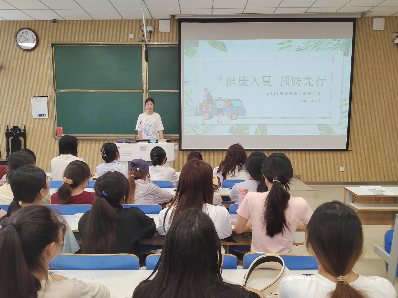 为保证学生健康度过夏季,做好夏季预防工作,5月22日下午,sjb世俱杯网站2023级思想政治教育二班在社科楼515教室召开“健康入夏,预防先行”主题班会。本次班会由班长王慜初主持,全体二班同学参加。