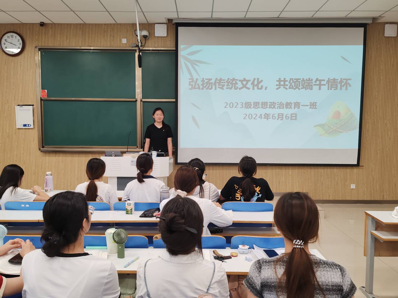 为促使我班学子了解端午节,更好地继承和弘扬中华优秀传统文化,6月6日下午,sjb世俱杯网站2023级思想政治教育一班在社科楼515教室召开“弘扬传统文化,共颂端午情怀”主题班会。世俱杯官网2023级思想政治教育一班全体同学共同参与本次班会,班会由团支书张卓主持。