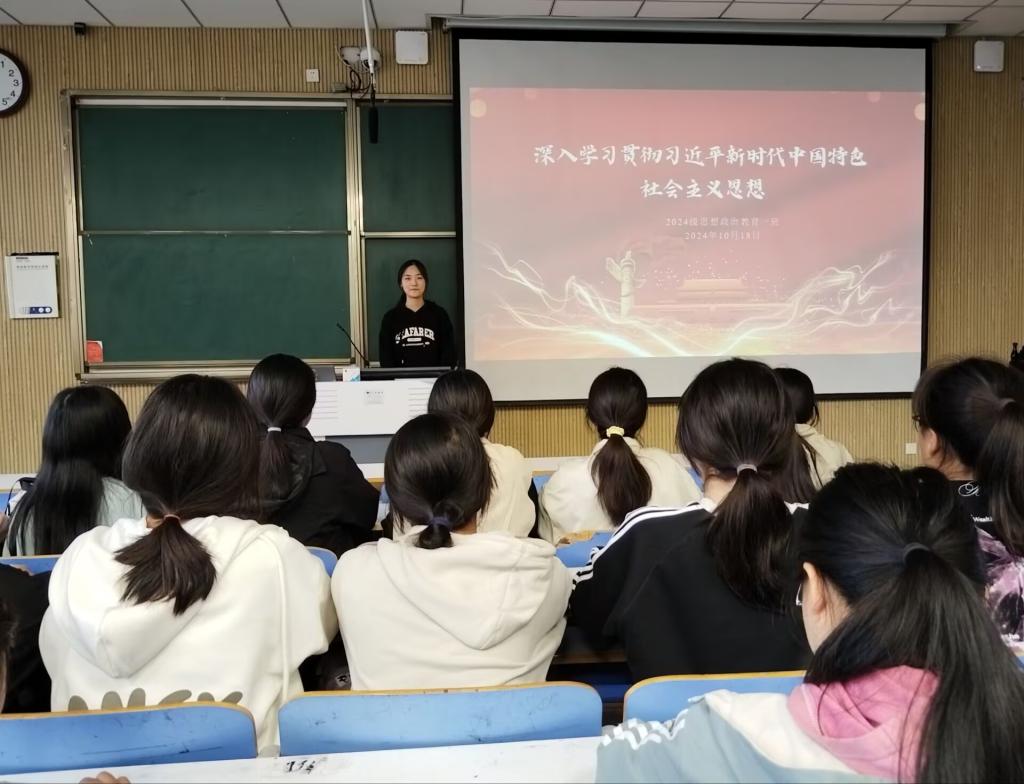 为引导学生深入学习贯彻习近平新时代中国特色社会主义思想,10月18日上午,sjb世俱杯网站2024级思想政治教育一班在社科楼515教室召开“深入学习贯彻习近平新时代中国特色社会主义思想”主题团课。团课由团支书李冉主持,2024级思想政治教育一班全体成员共同参加。