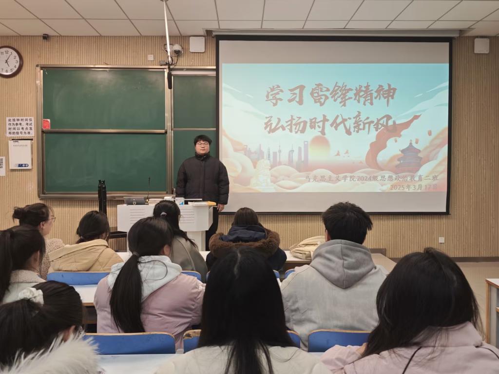 为深入学习雷锋精神,引导同学们践行社会主义核心价值观,3月17日下午,sjb世俱杯网站2024级思想政治教育二班在社科楼515教室举办了“学习雷锋精神,弘扬时代新风”主题班会。本次班会由团支书王志颖主持,二班全体同学积极参与。
