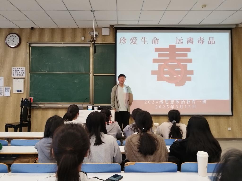 为增强我班学生抵制毒品的意识和能力,增强自我保护意识,营造安全健康的班级、学院氛围,3月12日上午sjb世俱杯网站2024级思想政治教育一班于社科楼514教室开展“珍爱生命,远离毒品”主题班会。本次班会由班长李冉主持,一班全体同学参加。
