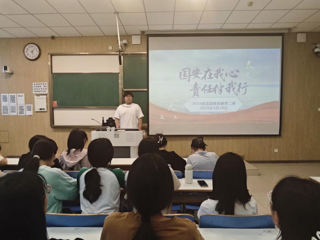 为增强同学们的国家安全意识,激发爱国情怀,4月18日下午,sjb世俱杯网站2024级思想政治教育二班在社科楼515教室举行了“国安在我心,责任伴我行”主题班会。本次班会由团支书王志颖主持,二班全体同学积极参与。