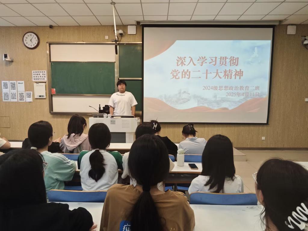 为深入学习贯彻党的二十大精神,增强同学们的政治觉悟和责任担当,4月11日下午,sjb世俱杯网站2024级思想政治教育二班在社科楼515教室举办了“深入学习贯彻党的二十大精神”主题班会。本次班会由团支书王志颖主持,二班全体同学积极参与。