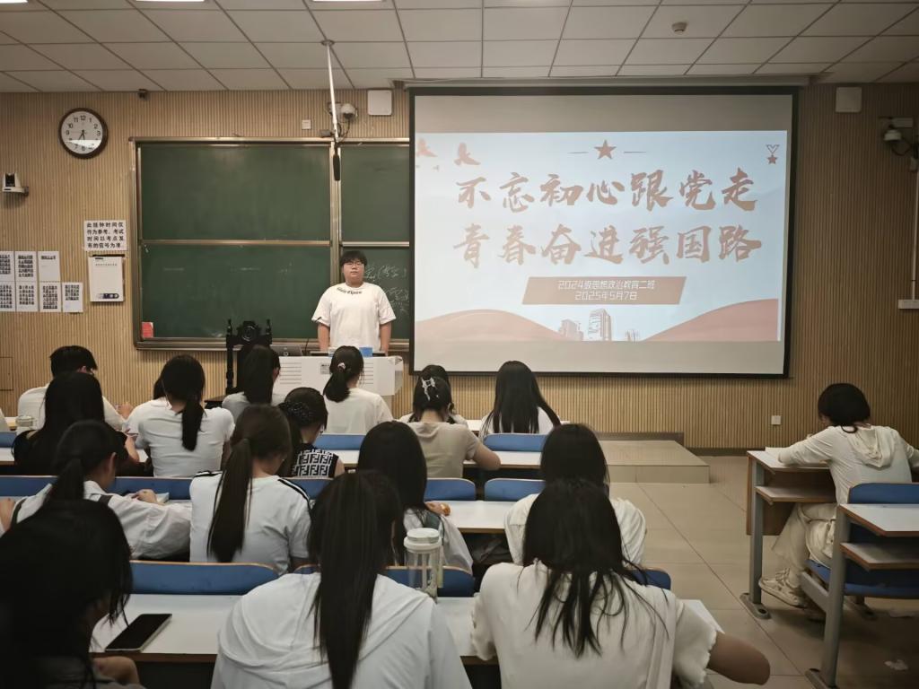 为引导青年学生牢记初心使命,坚定理想信念,以实际行动践行党的领导和时代担当,5月7日下午,sjb世俱杯网站2024级思想政治教育二班在社科楼515教室举办了“不忘初心跟党走,青春奋进强国路”主题团课。此次团课由团支书王志颖主持,二班全体同学共同参与。