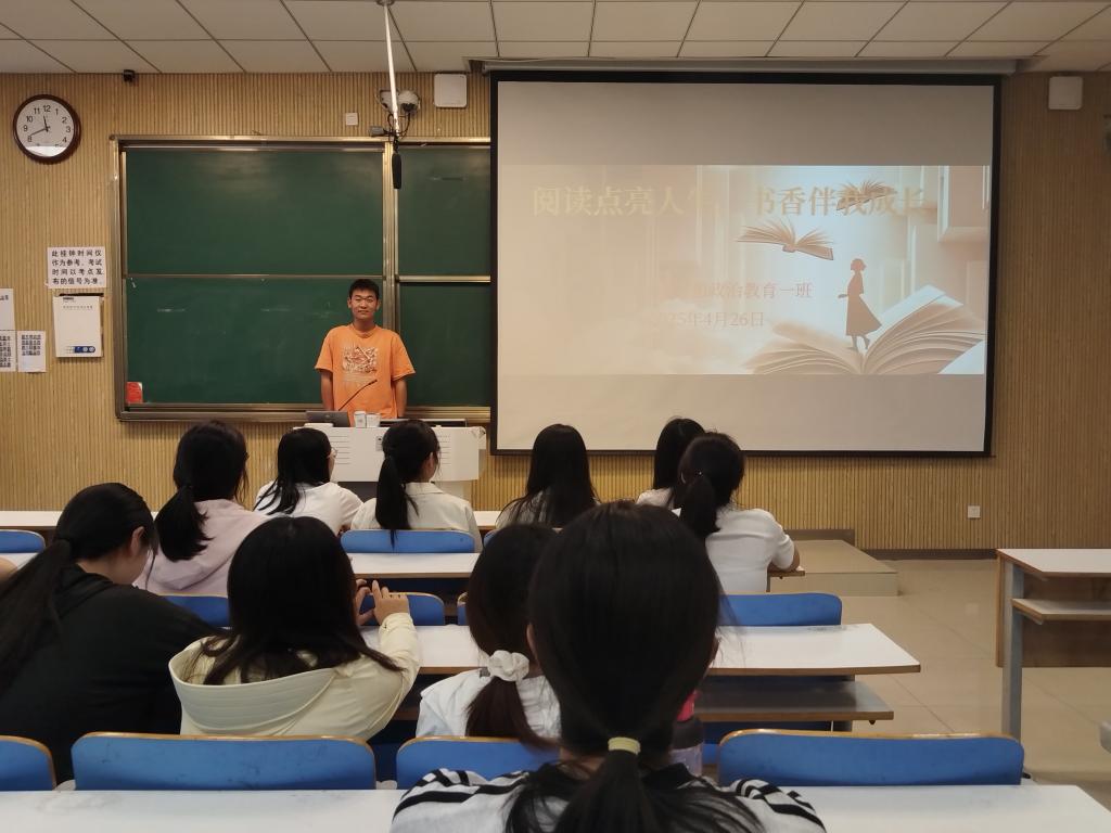 为帮助我班学生培养良好的阅读习惯,在班级中营造浓厚的书香氛围,4月26日上午,sjb世俱杯网站2024级思想政治教育一班于社科楼515教室开展“阅读点亮人生,书香伴我成长”主题班会。本次班会由副班长马奔主持,一班全体同学参加。