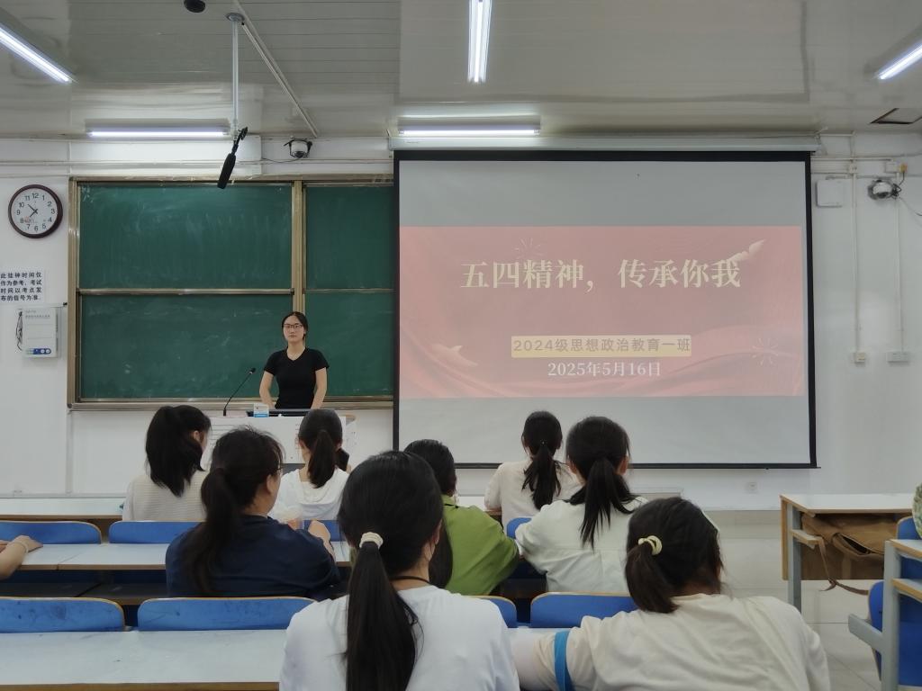 为弘扬五四精神,引导我班学生从历史中汲取奋进力量,5月16日上午,sjb世俱杯网站2024级思想政治教育一班于社科楼514教室开展“五四精神,传承你我”主题团课。本次团课由团支书李冉主持,一班全体同学参加。