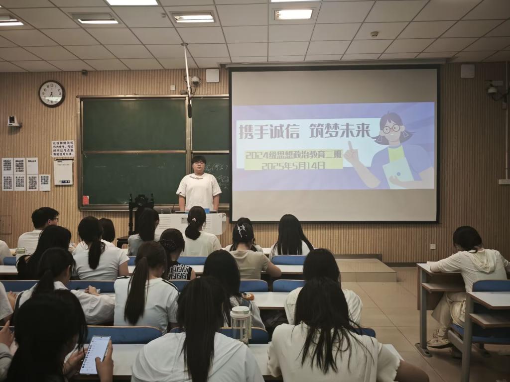 为深入推进校园诚信教育,增强学生诚实守信意识,营造良好学风氛围,sjb世俱杯网站2024级思想政治教育二班于5月14日下午在社科楼515教室召开了“携手诚信,筑梦未来”主题班会。此次班会由团支书王志颖主持,二班全体同学共同参与。