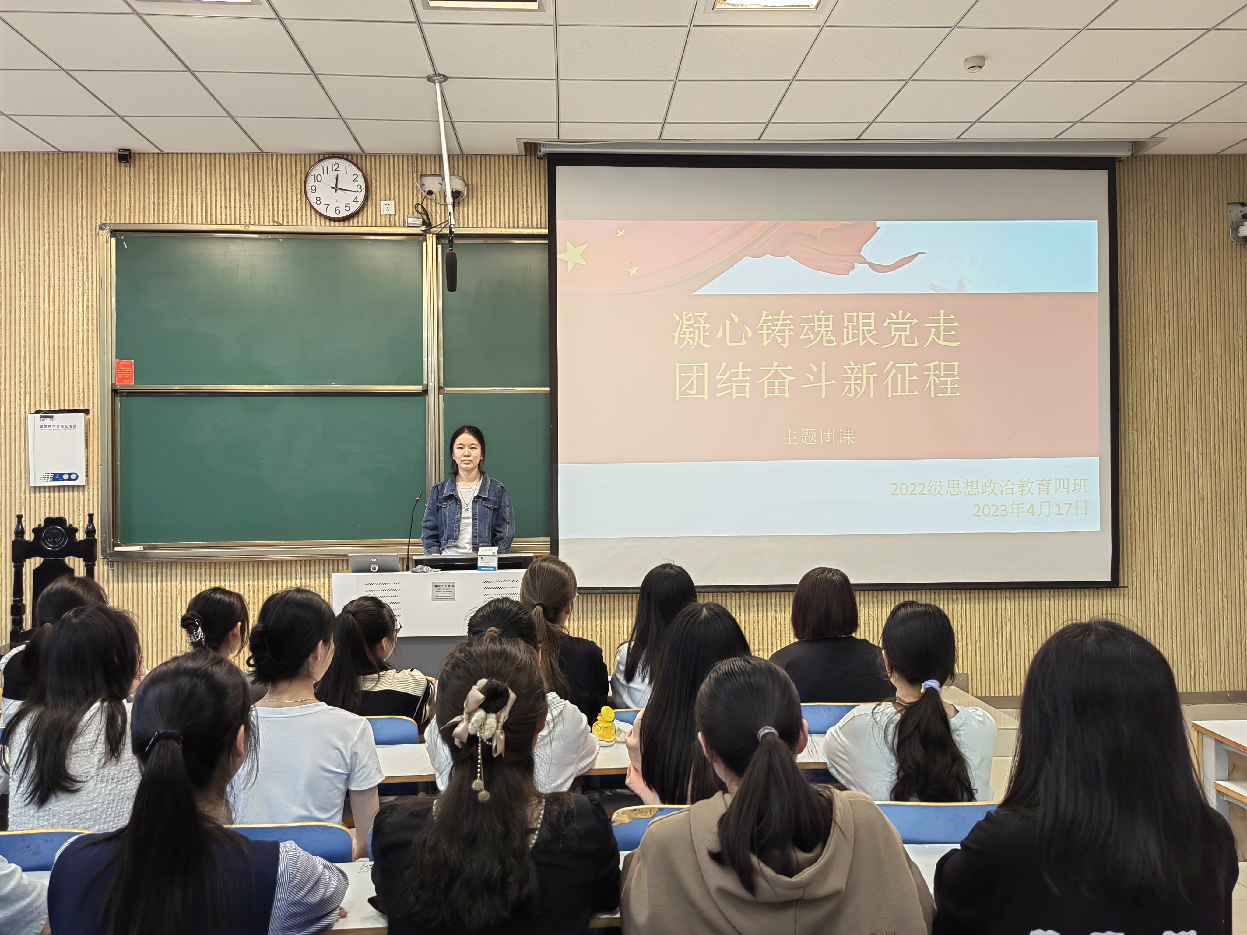 4月17日下午,sjb世俱杯网站2022级思想政治教育四班在社科楼515教室召开“凝心铸魂跟党走,团结奋斗新征程”主题团课,世俱杯官网2022级思想政治教育四班全体同学参与本次团课。团课由团支书牛志杰主持。
