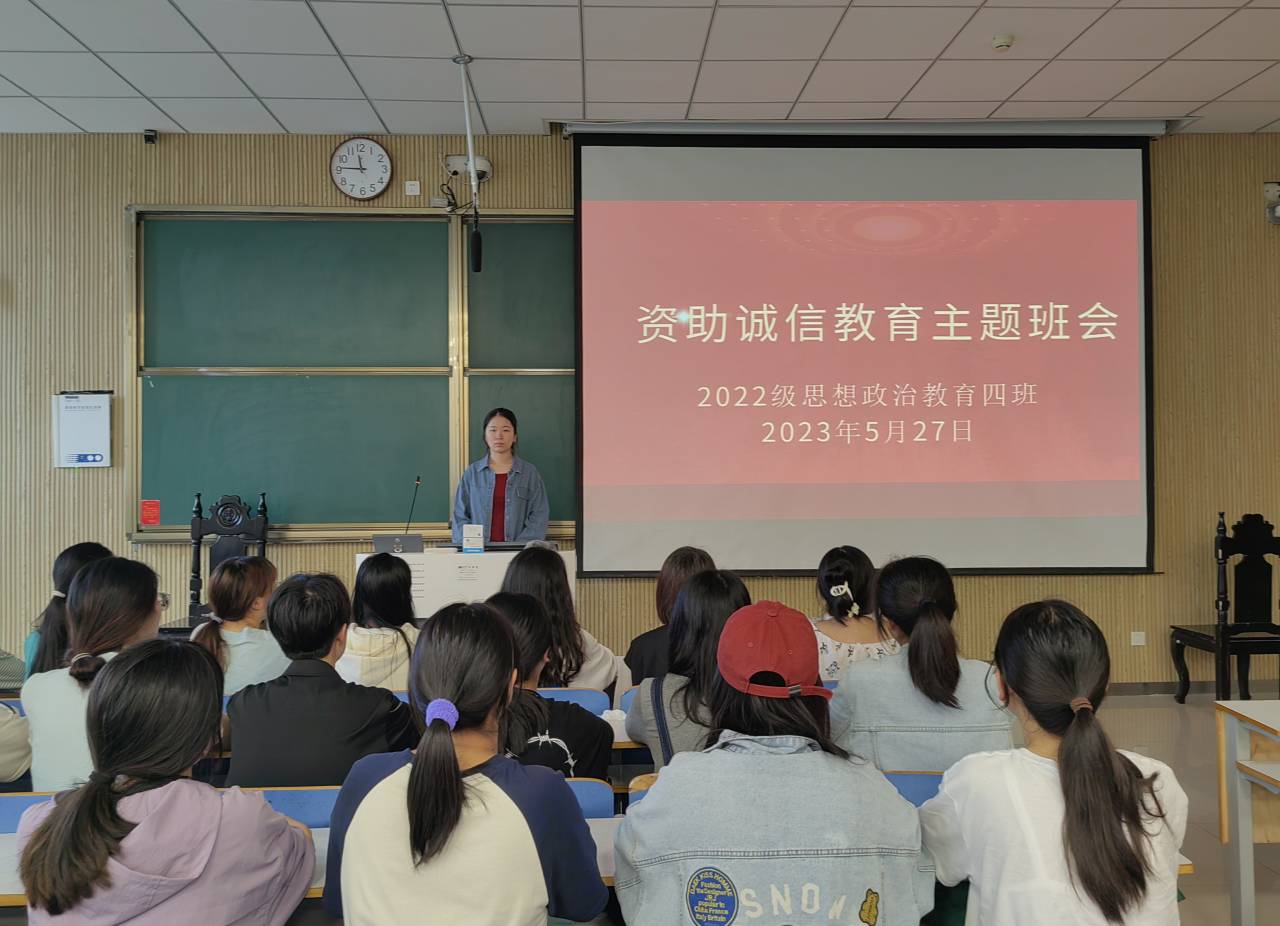 为提高学生的诚信意识和诚信素质,推动思想政治教育工作和学生资助工作持续健康发展,5月27日上午,sjb世俱杯网站2022级思想政治教育四班在社科楼515教室召开“资助诚信教育”主题班会,世俱杯官网2022级思想政治教育四班全体同学参与本次班会。班长牛志杰主持本次班会。