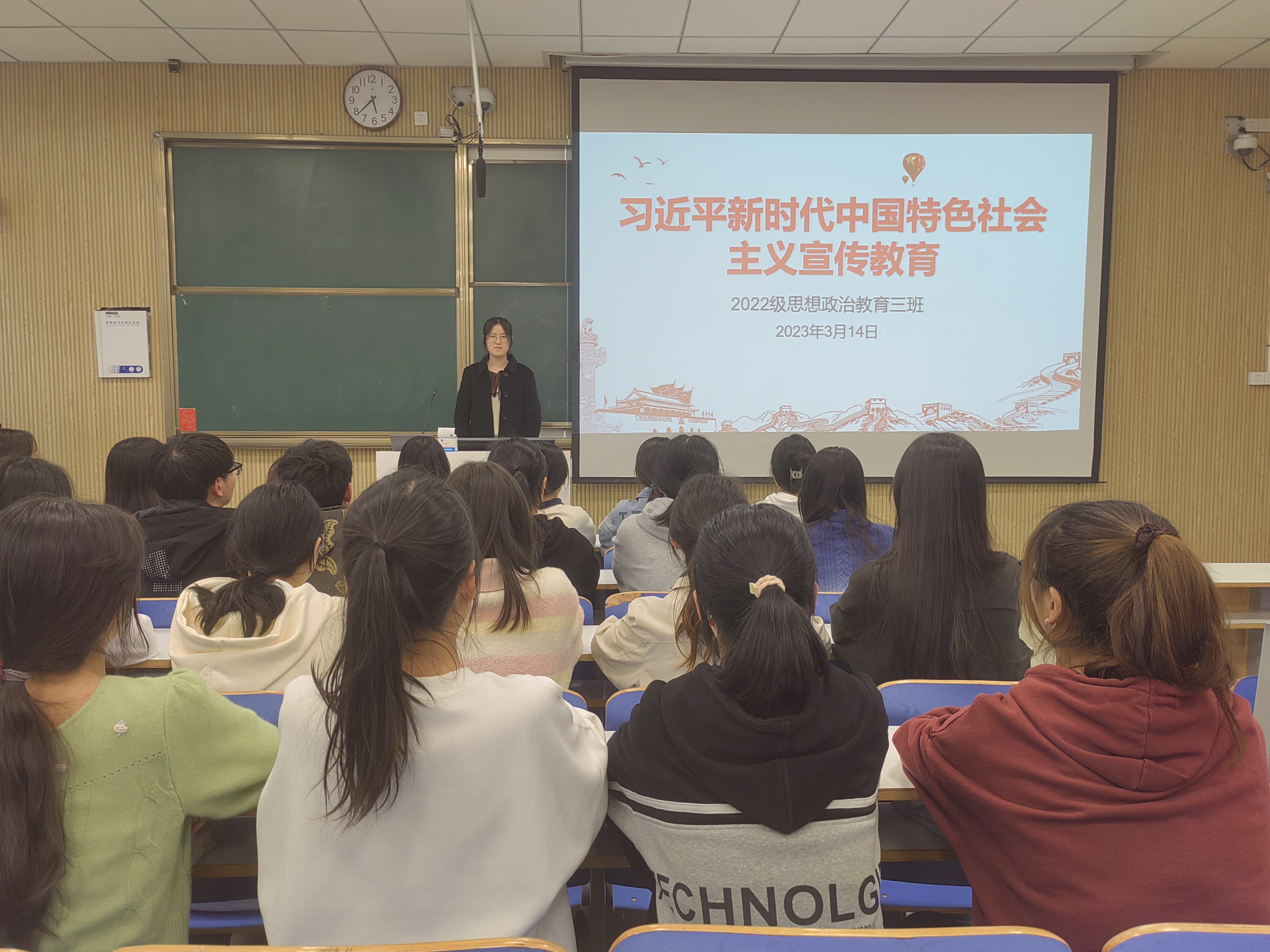 3月14日下午,sjb世俱杯网站2022级思想政治教育三班在社科楼515教室召开习近平新时代中国特色社会主义思想宣传教育主题班会。世俱杯官网2022级思想政治教育三班全体成员共同参加此次班会。班会由组织委员武文雪主持。