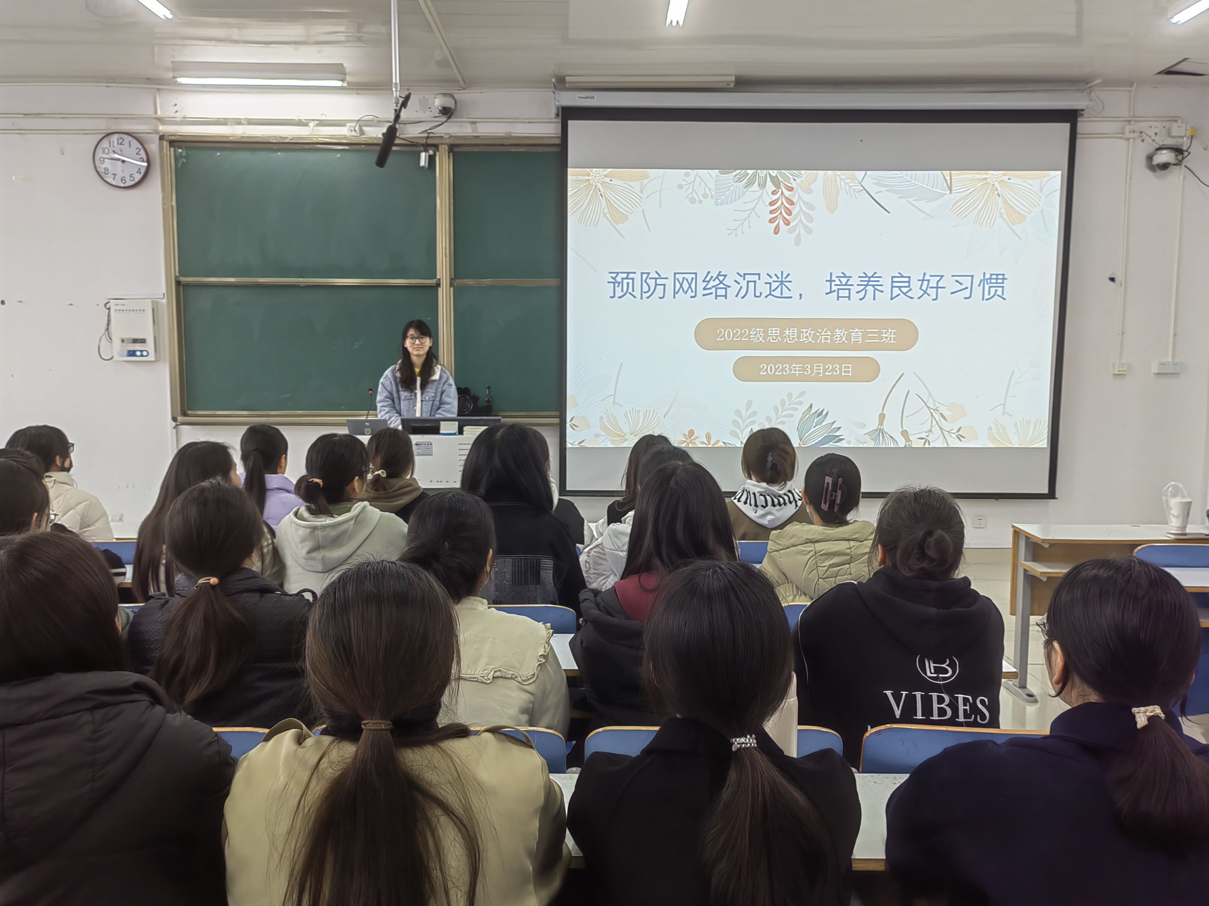 为预防网络沉迷寻方法、找路径,3月23日上午,sjb世俱杯网站2022级思想政治教育三班在社科楼515教室召开“预防网络沉迷,培养良好习惯”主题班会。世俱杯官网2022级思想政治教育三班全体成员共同参与此次班会。班会由心理委员张韶涵主持。