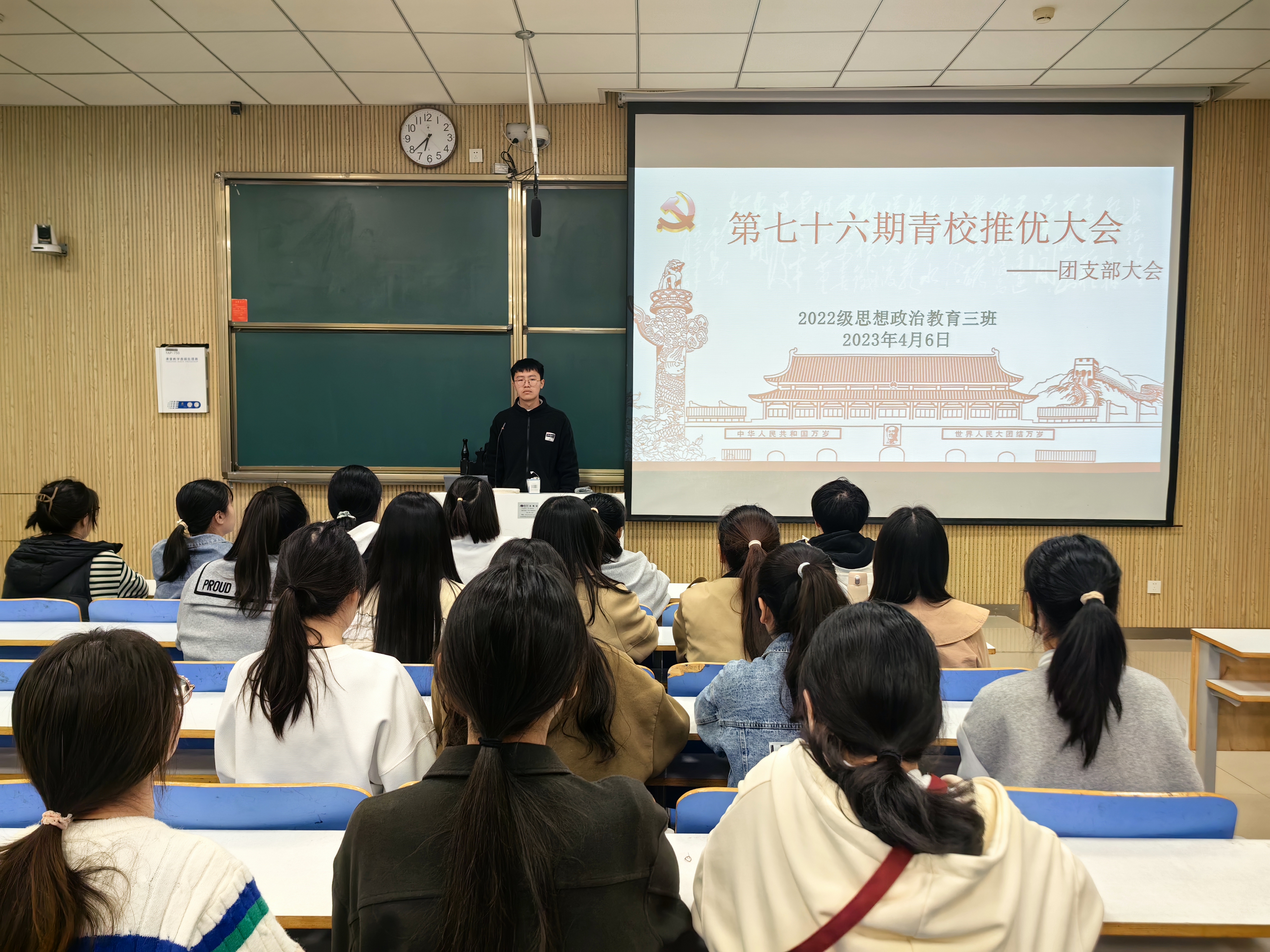 4月6日下午,sjb世俱杯网站2022级思想政治教育三班在社科楼515教室召开青校推优大会。世俱杯官网2022级思想政治教育三班班主任吴梦云以及三班全体同学共同参与此次大会。大会由团支书余浩洋主持。