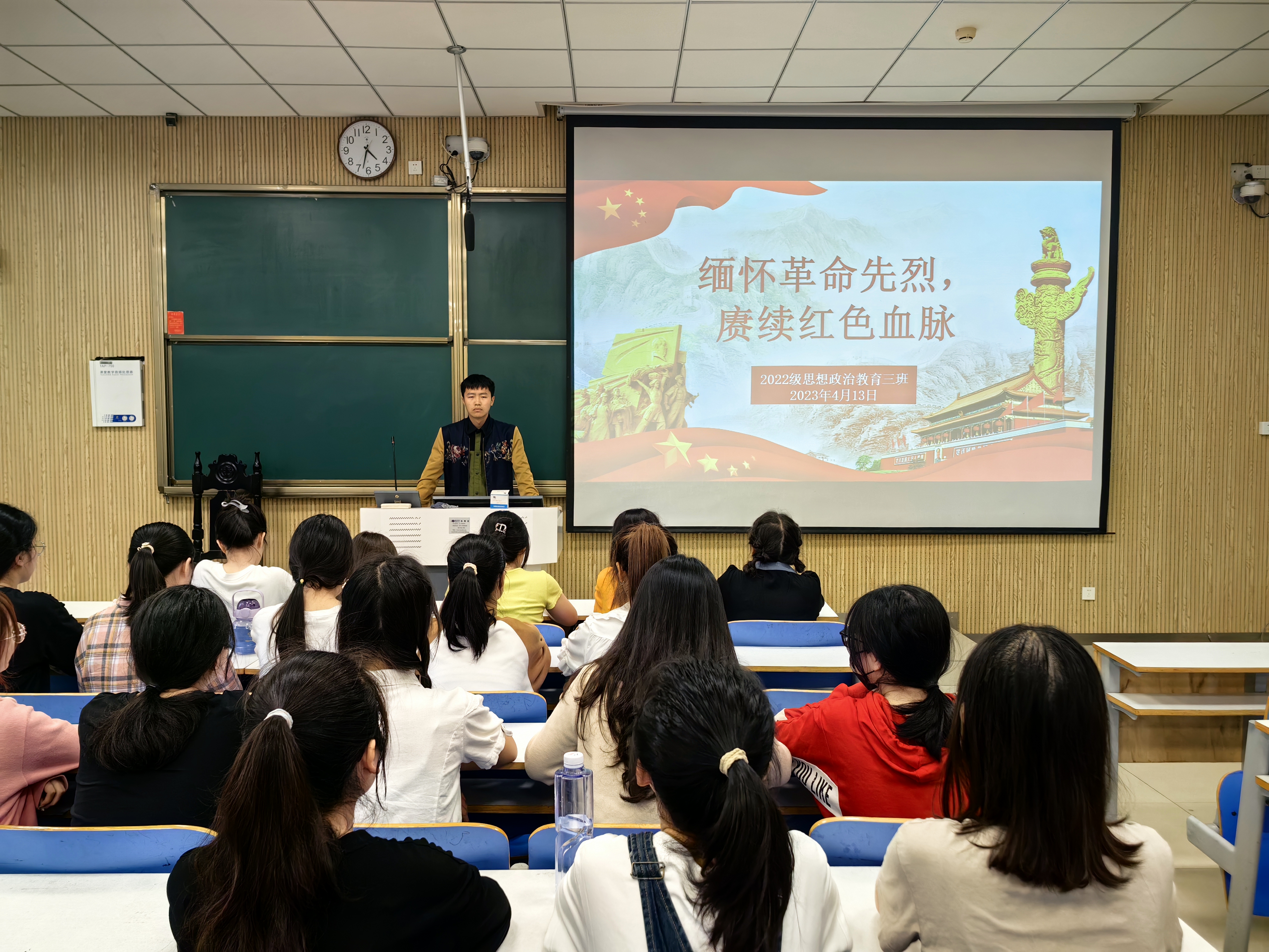 为传承红色基因,弘扬革命精神,4月13日下午,sjb世俱杯网站2022级思想政治教育三班在社科楼515教室召开“缅怀革命先烈,赓续红色血脉”主题团课。世俱杯官网2022级思想政治教育三班全体成员共同参与此次主题团课。团课由团支书余浩洋主持。