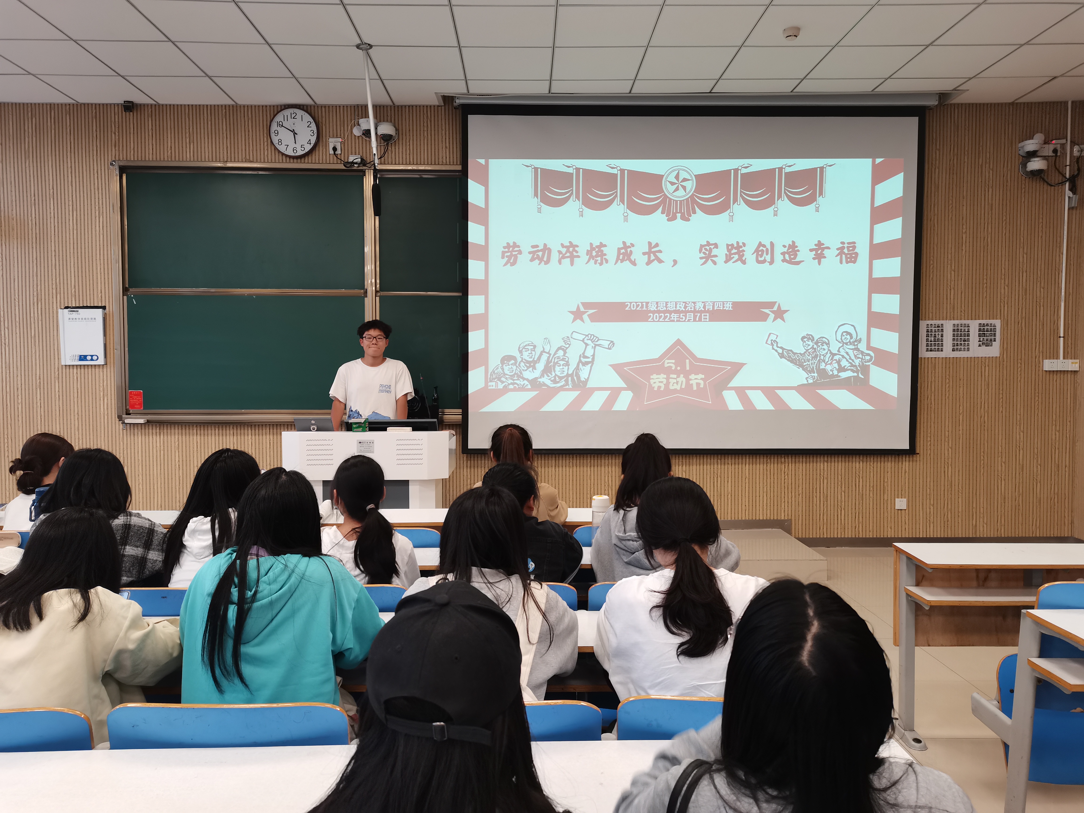 为培养同学们的劳动能力,让劳动精神在青年中发扬光大,5月7日下午,sjb世俱杯网站2021级思想政治教育四班在社科楼515教室开展“劳动淬炼成长,实践创造幸福”主题班会。2021级思想政治教育四班全体同学共同参会。班会由副班长常康哲主持。