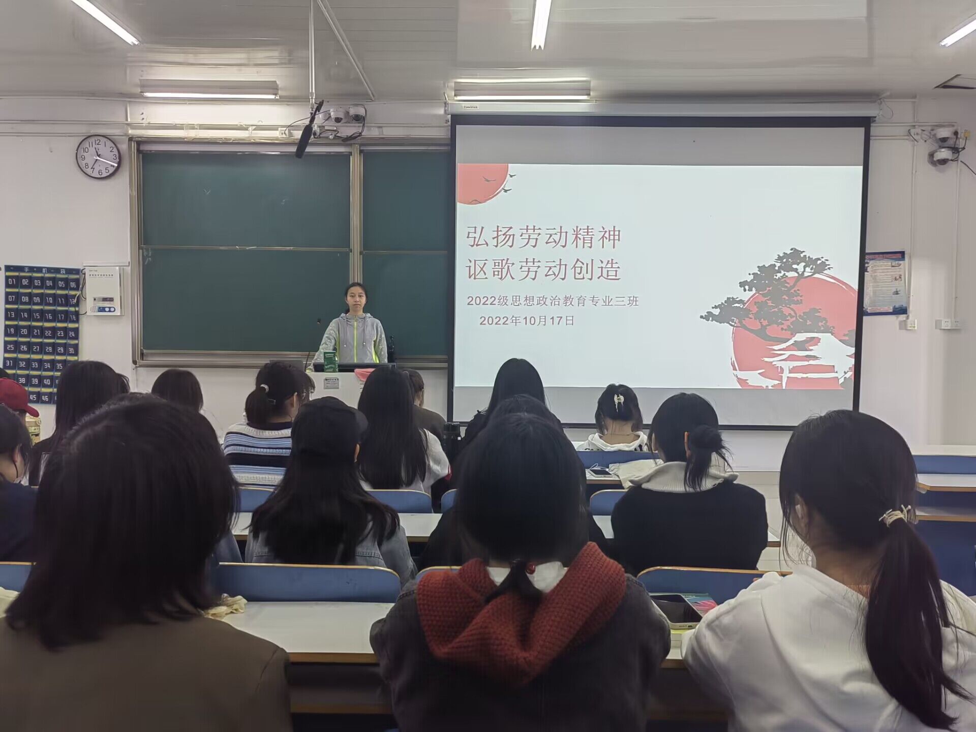 为树立正确的劳动观,切实加强大学生劳动教育,10月17日上午,sjb世俱杯网站2022级思想政治教育三班在社科楼515教室召开“弘扬劳动精神,讴歌劳动创造”主题班会。2022级思想政治教育三班全体成员参加会议,会议由劳动委员郑慧芳主持。