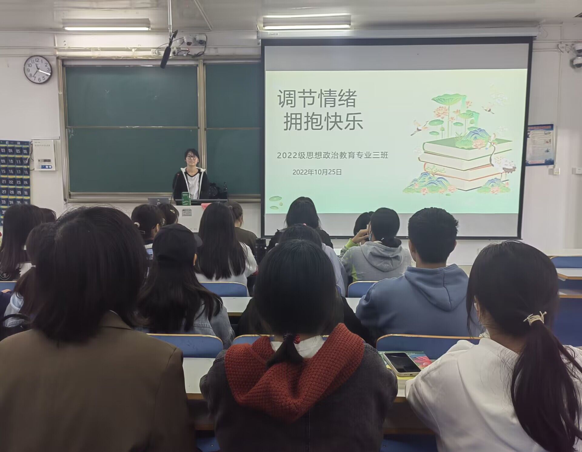 为深入推动大学生心理健康教育,引导大学生积极主动地关注自身心理健康,10月25日上午,sjb世俱杯网站2022级思想政治教育三班在社科楼514教室召开“调节情绪,拥抱快乐”主题班会。世俱杯官网2022级思想政治教育三班全体成员共同参加会议,班会由心理委员张韶涵主持。