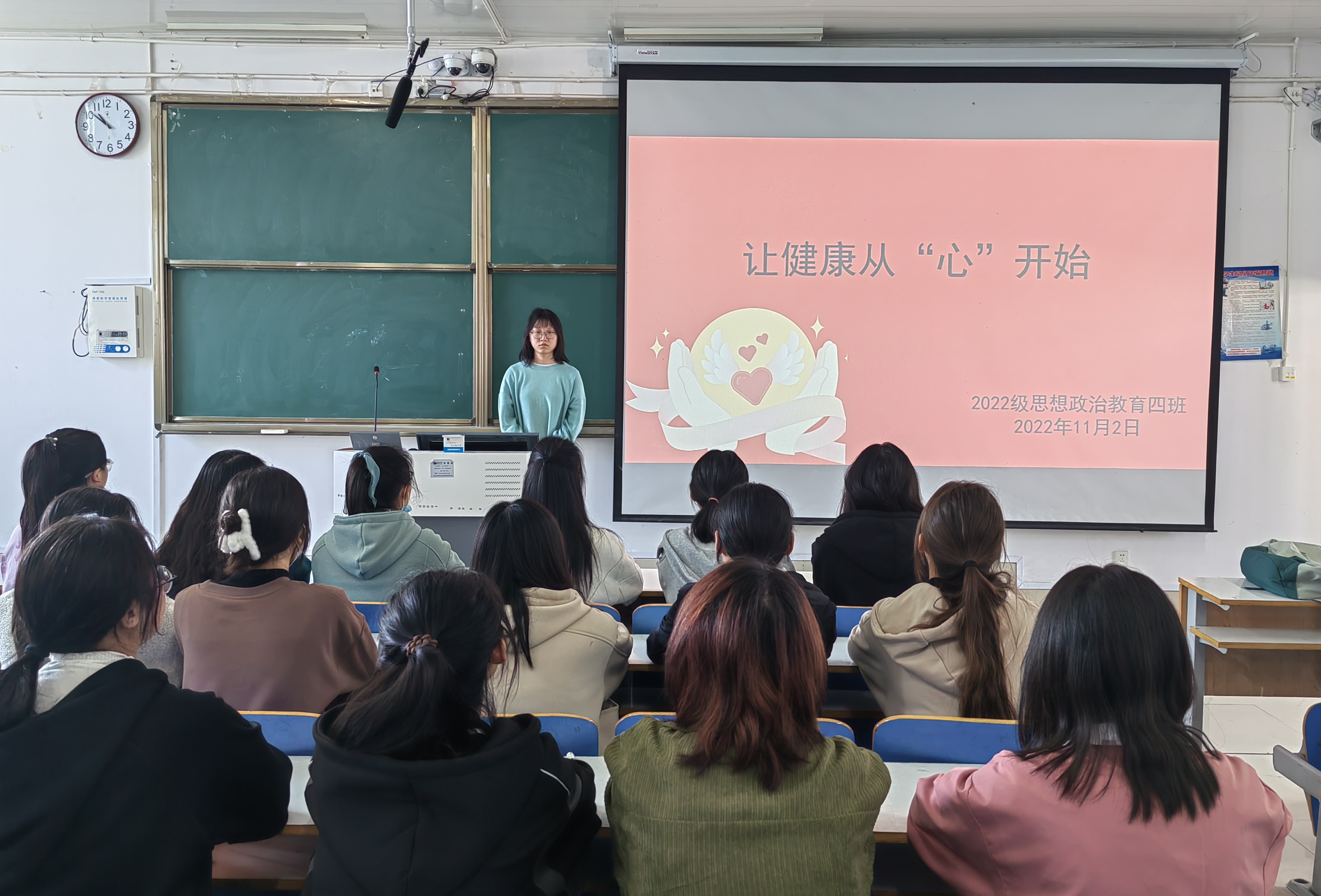 为宣传心理健康知识,提高同学们心理调节能力,11月2日下午,sjb世俱杯网站2022级思想政治教育四班在社科楼514教室召开“让健康从心开始”主题班会。sjb世俱杯网站2022级思想政治教育四班全体同学参加此次班会。班会由心理委员徐成若主持。