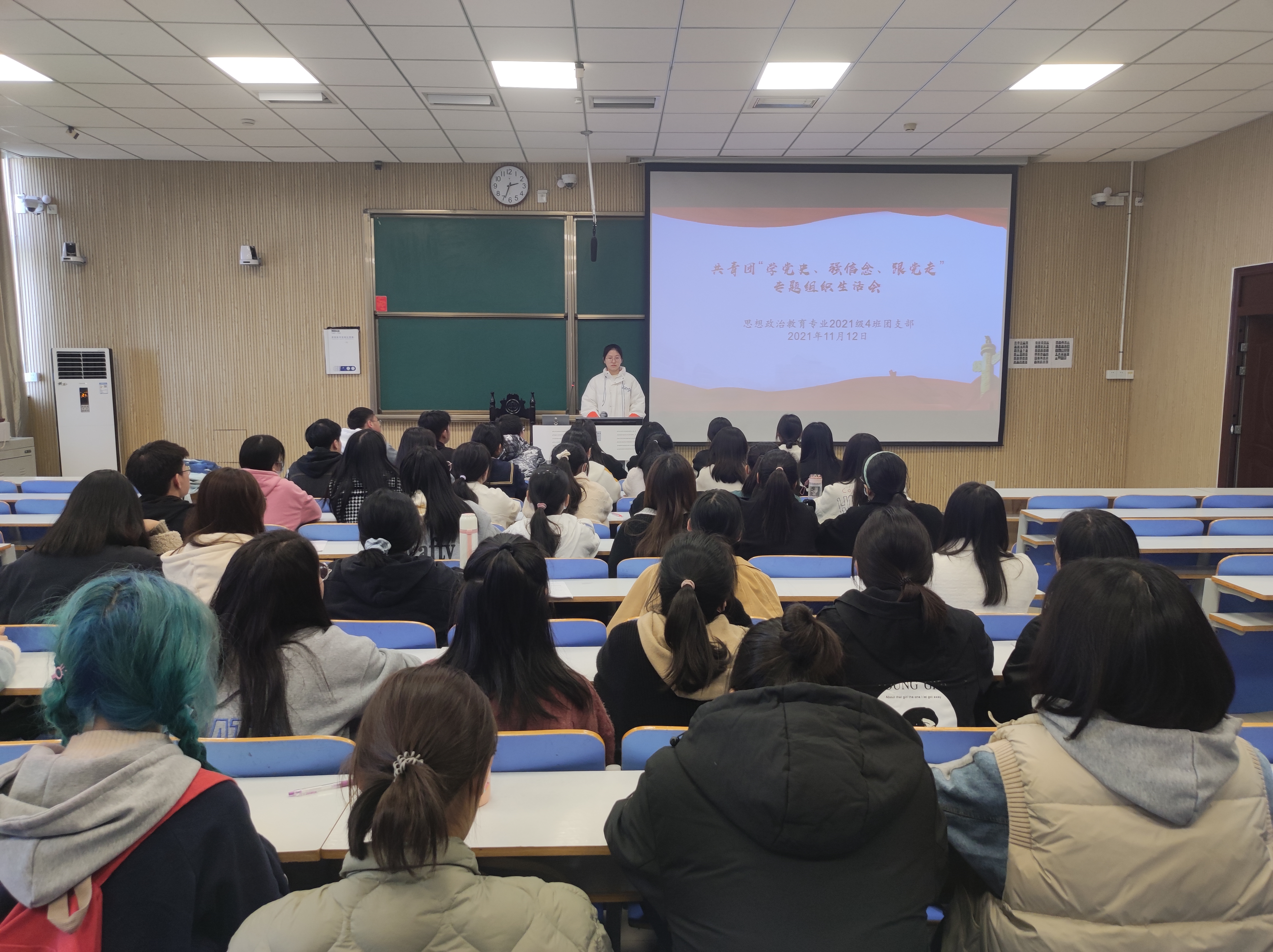 为响应共青团“学党史、强信念、跟党走”的号召,11月12日下午,sjb世俱杯网站2021级思想政治教育四班在社科楼515教室召开“学党史、强信念、跟党走”党史学习教育专题组织生活会。2021级思想政治教育四班全体同学参加了本次会议。会议由团支书刘珂含主持。