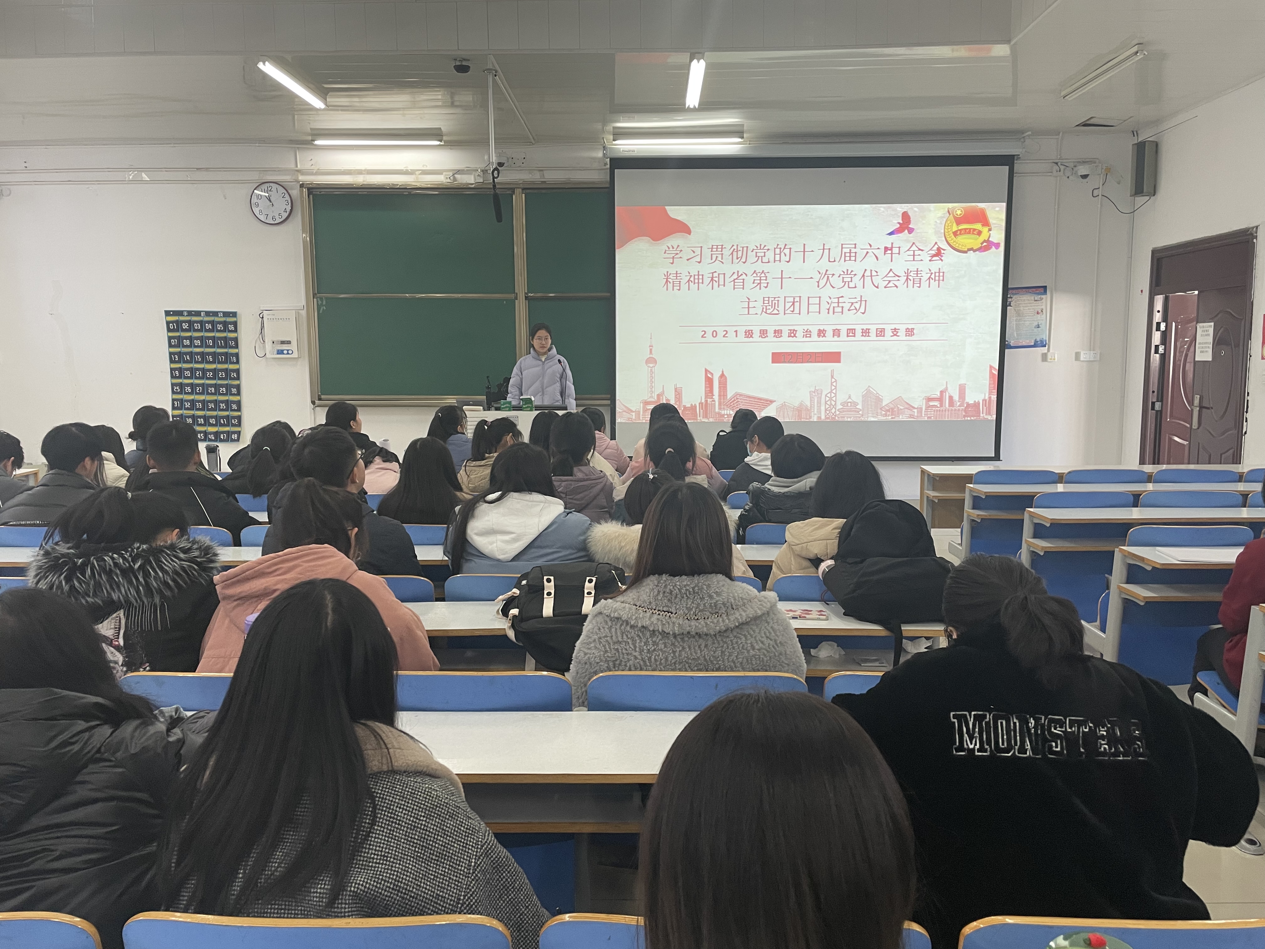 12月2日下午,sjb世俱杯网站2021级思想政治教育四班在社科楼514教室召开“学习贯彻党的十九届六中全会精神和第十一次党代会精神”主题团日活动。2021级思想政治教育四班全体团员参加本次团日活动。活动由团支书刘珂含主持。