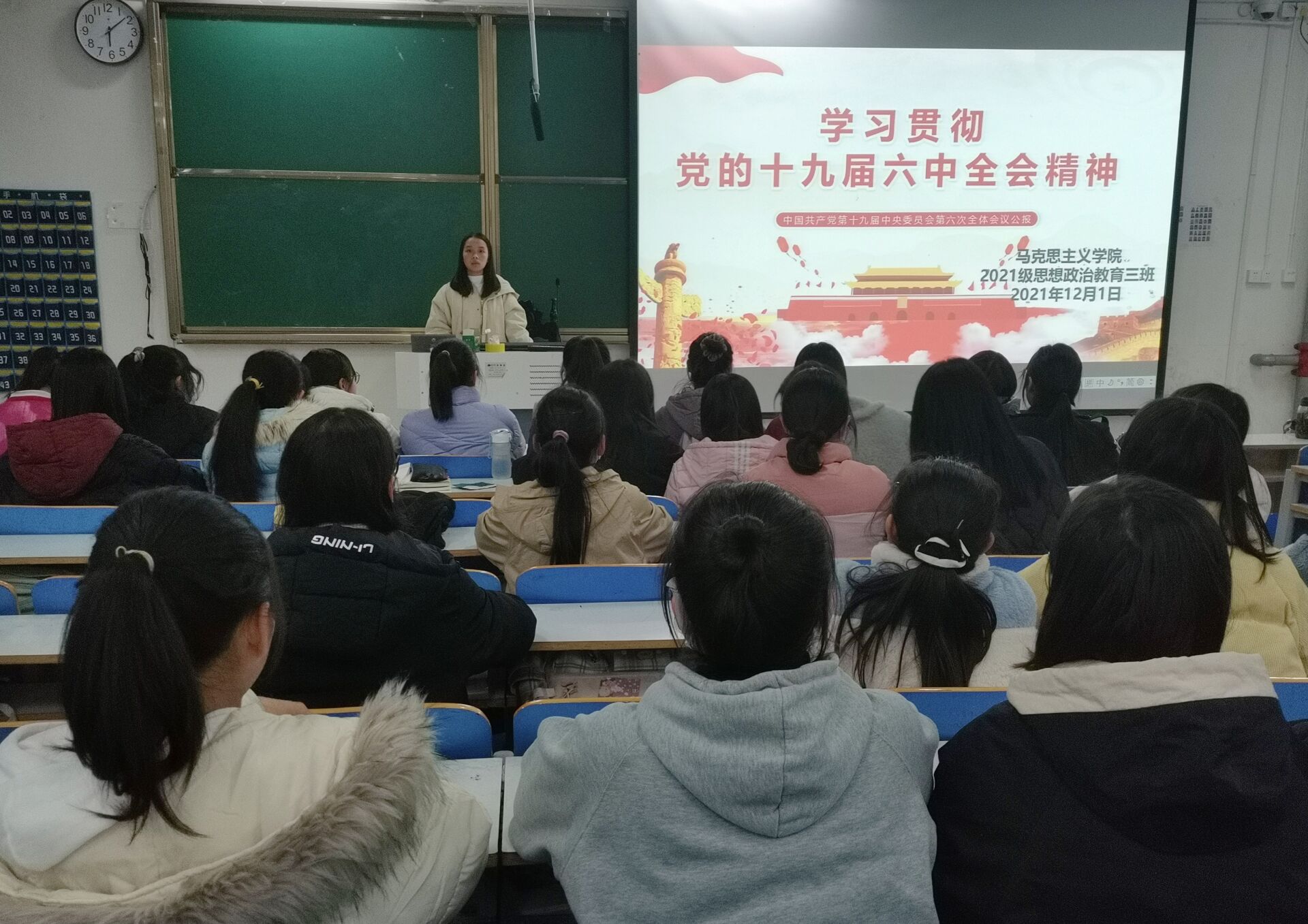12月1日下午,sjb世俱杯网站2021级思想政治教育三班在社科楼516召开学习党的十九届六中全会精神主题班会。2021级思想政治教育三班全体成员参加本次班会。班会由副班长王岚霄主持。