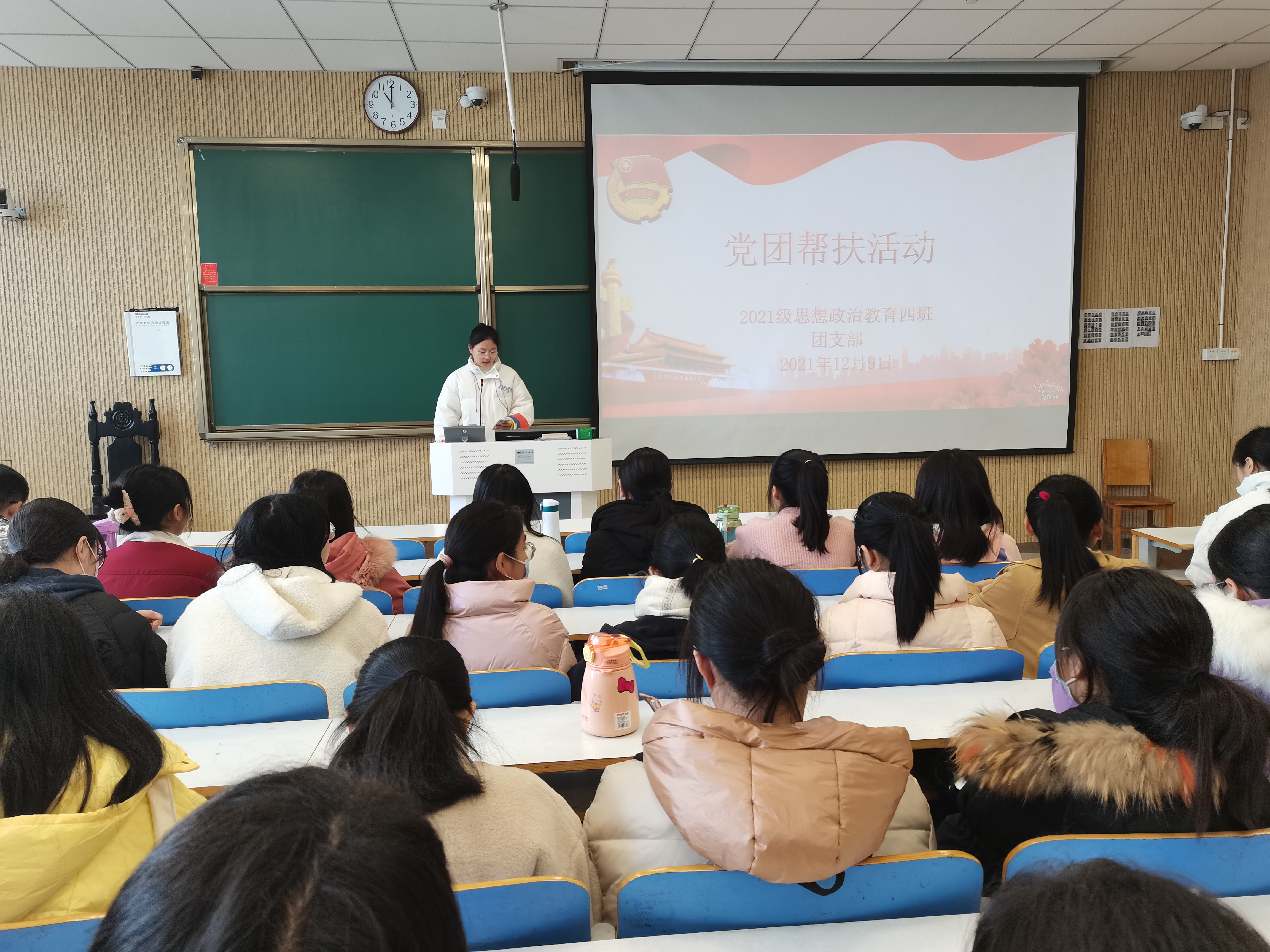 12月9日上午,sjb世俱杯网站2021级思想政治教育四班在社科楼515教室召开党团帮扶活动。辅导员高小佳、2018级思想政治教育一班的李东琴、韩一嘉及2021级思想政治教育四班全体团员参加此次活动。活动由团支书刘珂含主持。