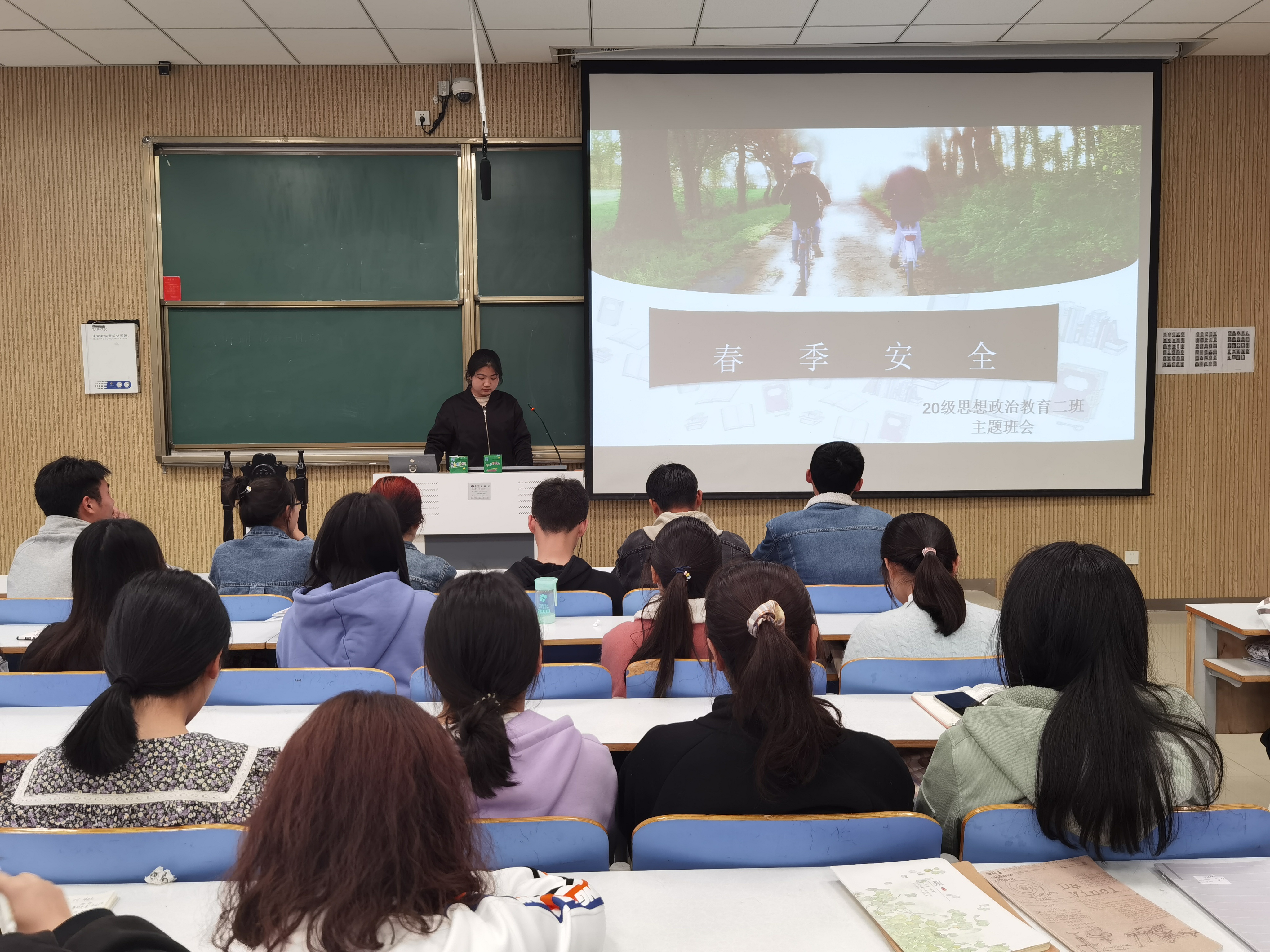 3月23日下午,sjb世俱杯网站2020级思想政治教育二班、定向二班在社科楼515教室顺利召开春季安全主题班会。2020级思想政治教育二班、定向二班全体学生共同参与本次班会。班会由孙雪主持。