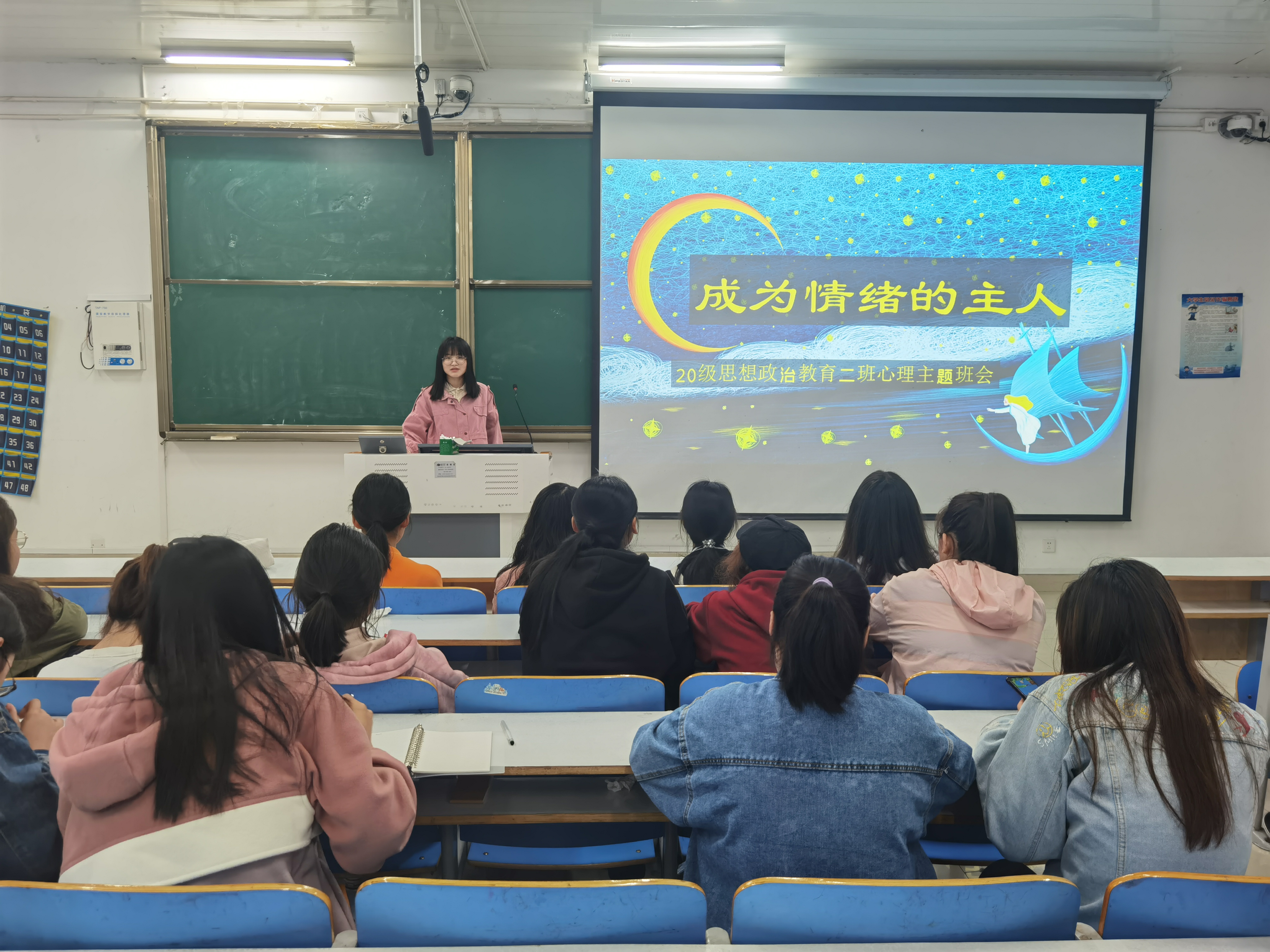4月21日下午,sjb世俱杯网站2020级思想政治教育二班在社科楼514教室顺利召开“成为情绪的主人”心理健康主题班会。2020级思想政治教育二班全体学生共同参与此次班会。班会由心理委员刘晶晶主持。