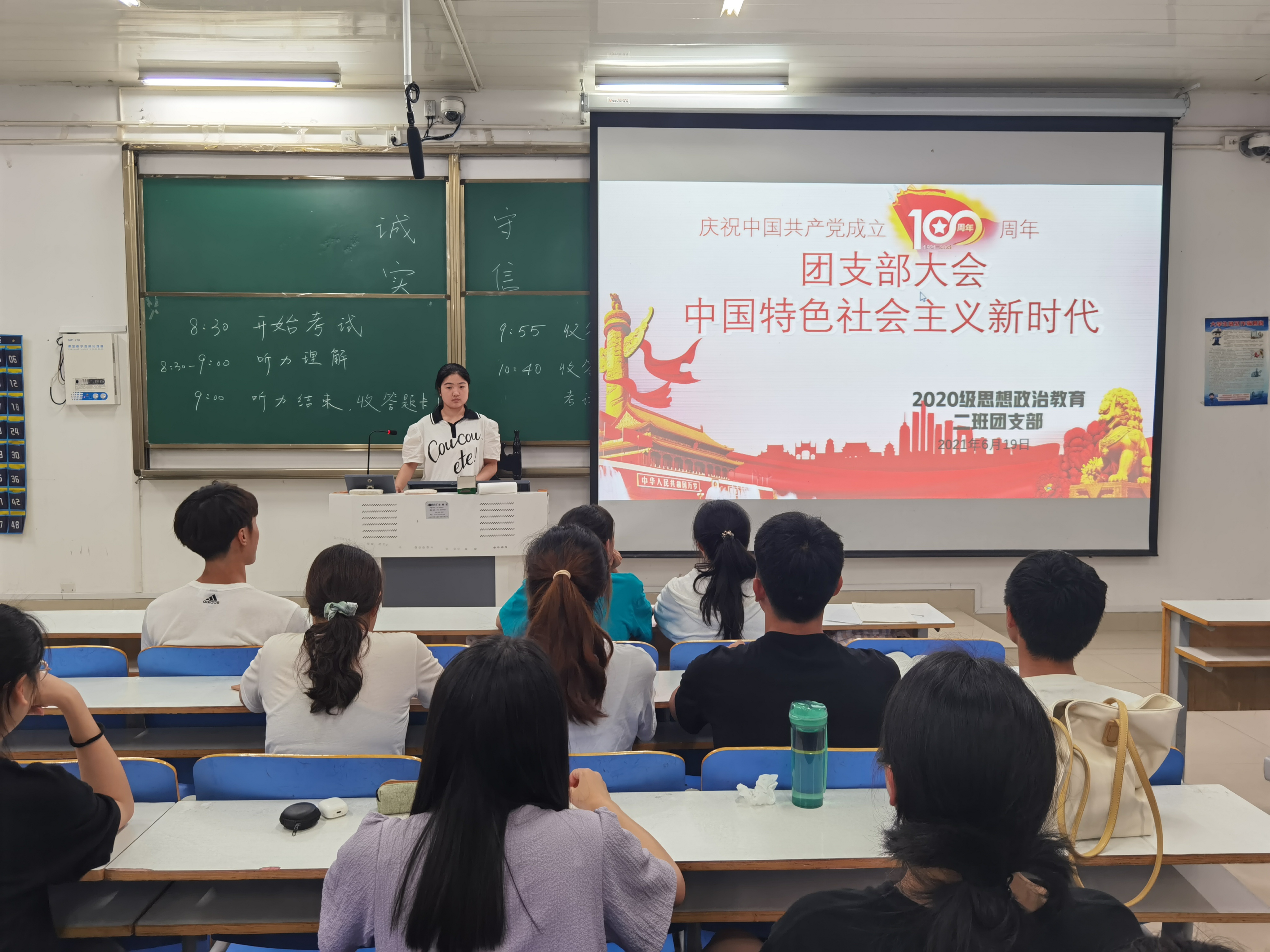 6月19日晚,sjb世俱杯网站2020级思想政治教育二班、定向二班学习习近平新时代中国特色社会主义思想团支部大会在社科楼514教室顺利召开。二班、定向二班全体团员参与会议。大会由孙雪主持。