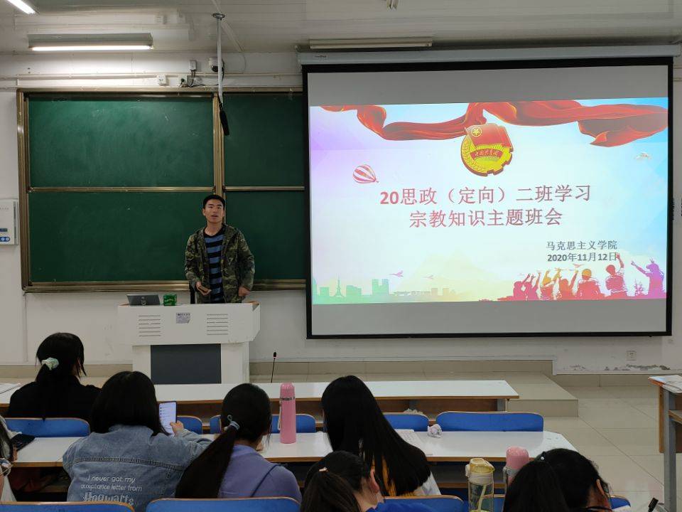 11月12日,sjb世俱杯网站思想政治教育定向二班学习宗教知识主题班会在社科楼514教室顺利召开。班会由副班长高红凯主持。