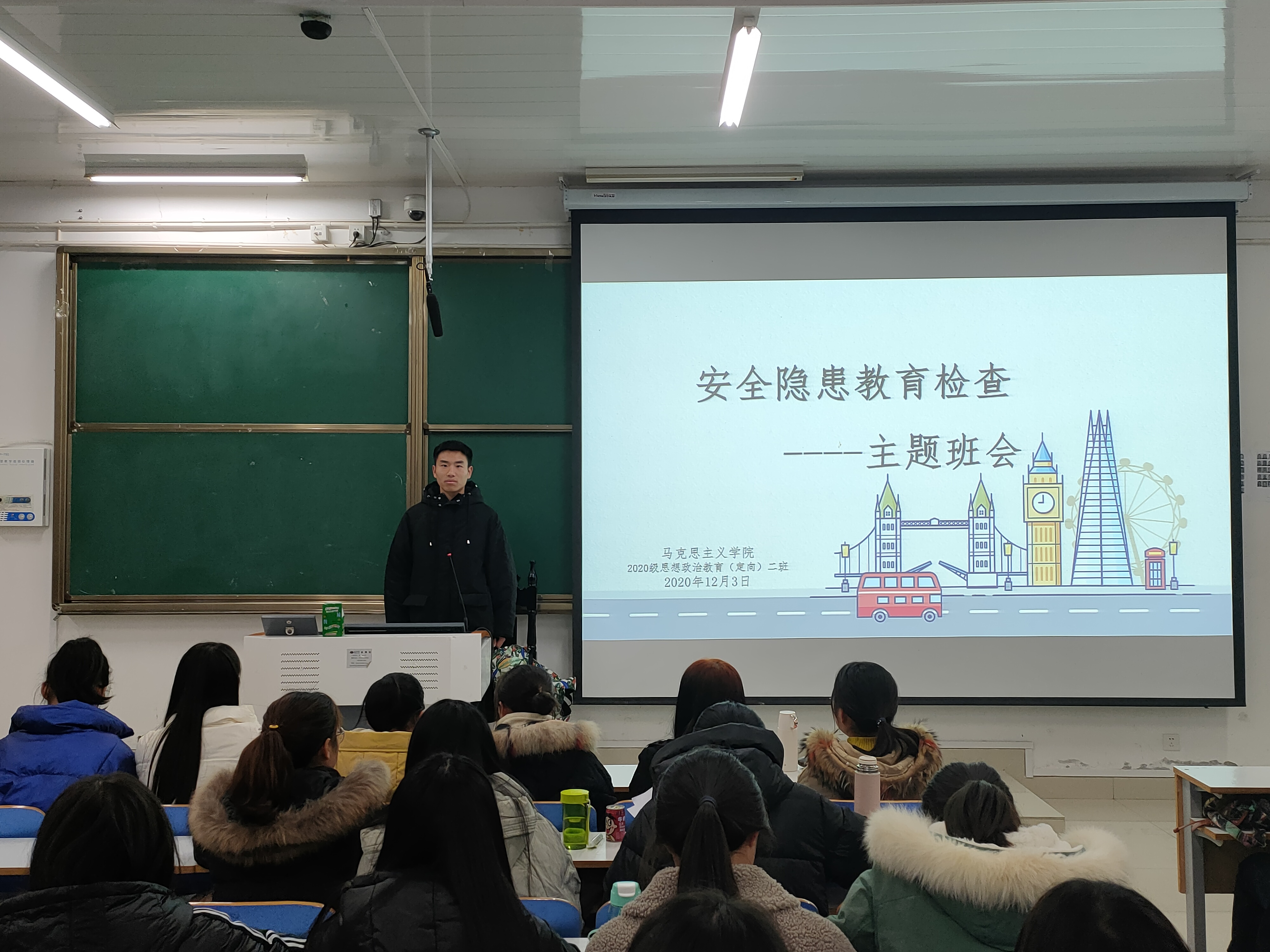 12月3日,sjb世俱杯网站思想政治教育定向二班安全隐患教育检查主题班会在社科楼516教室顺利开展。定向二班全体同学参与班会。班会由副班长高红凯主持。