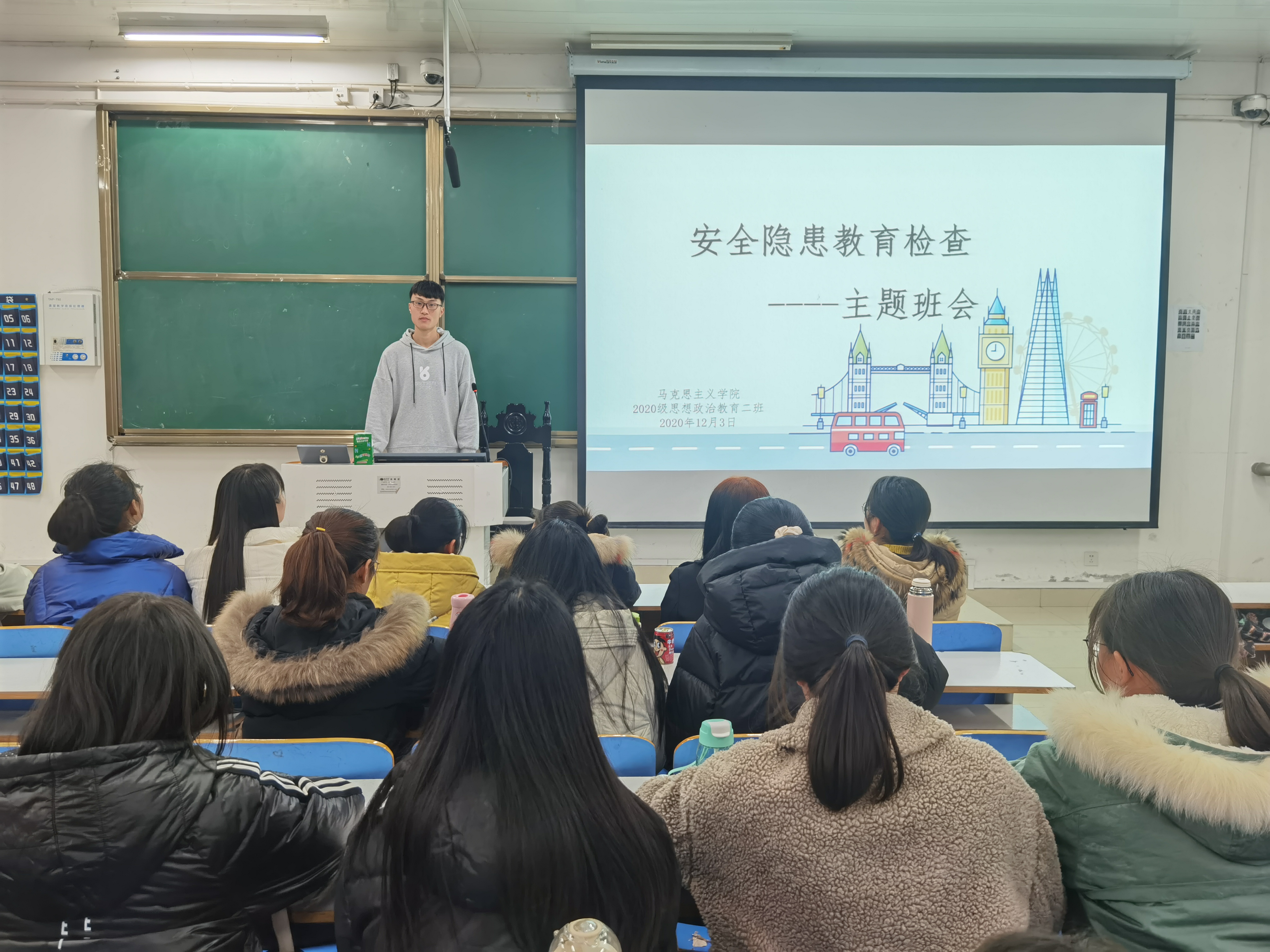 12月3日下午,sjb世俱杯网站2020级思想政治教育二班在社科楼516教室召开“安全隐患教育检查”主题班会。2020级思想政治教育二班全体学生共同参与本次班会。班会由陈宇航主持。