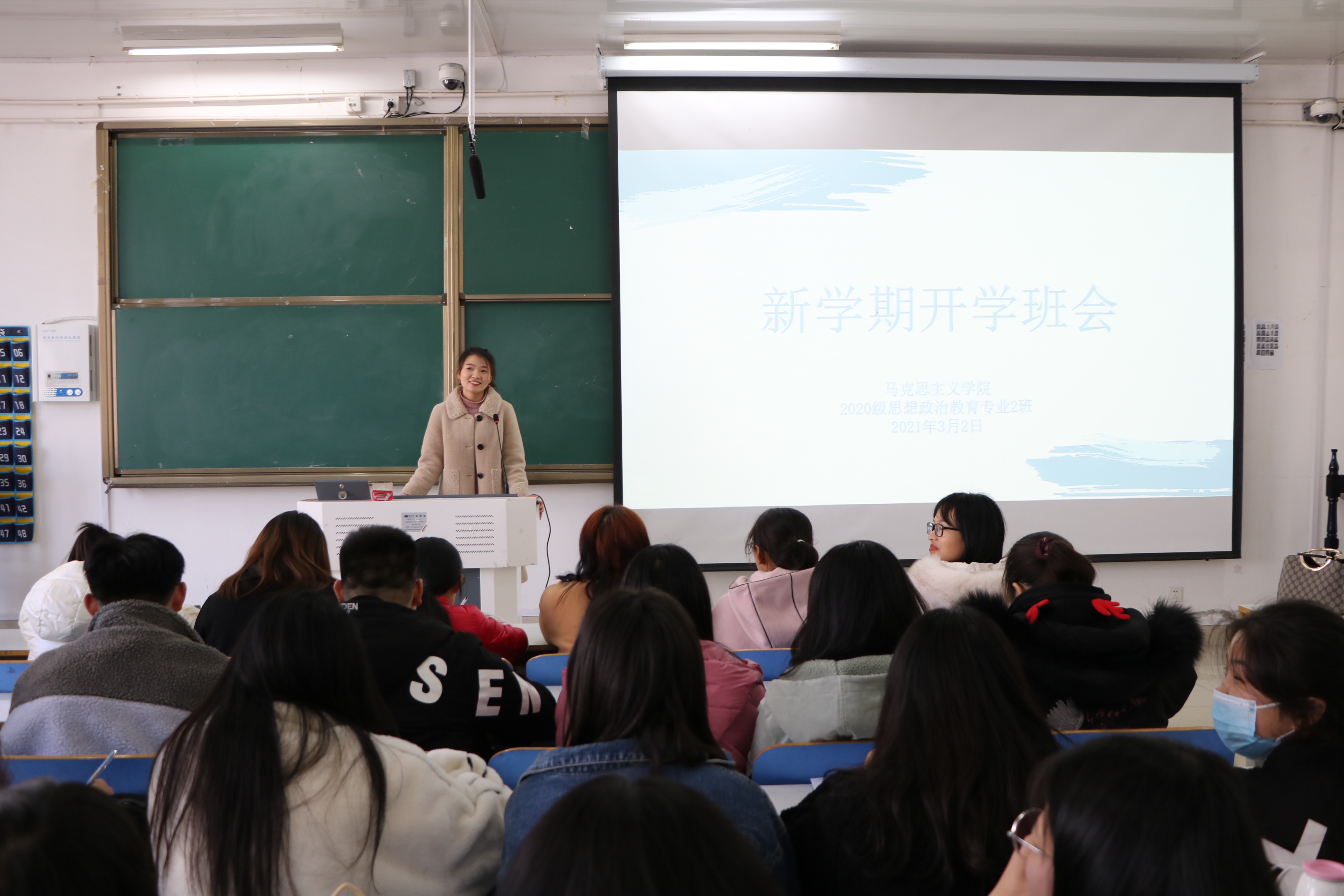 3月2日,sjb世俱杯网站2020级思想政治教育二班、定向二班新学期开学班会在社科楼516教室顺利召开。班主任陶青青、二班全体学生及本学期转入我班的8名新同学共同参与本次班会。会议由陶青青主持。