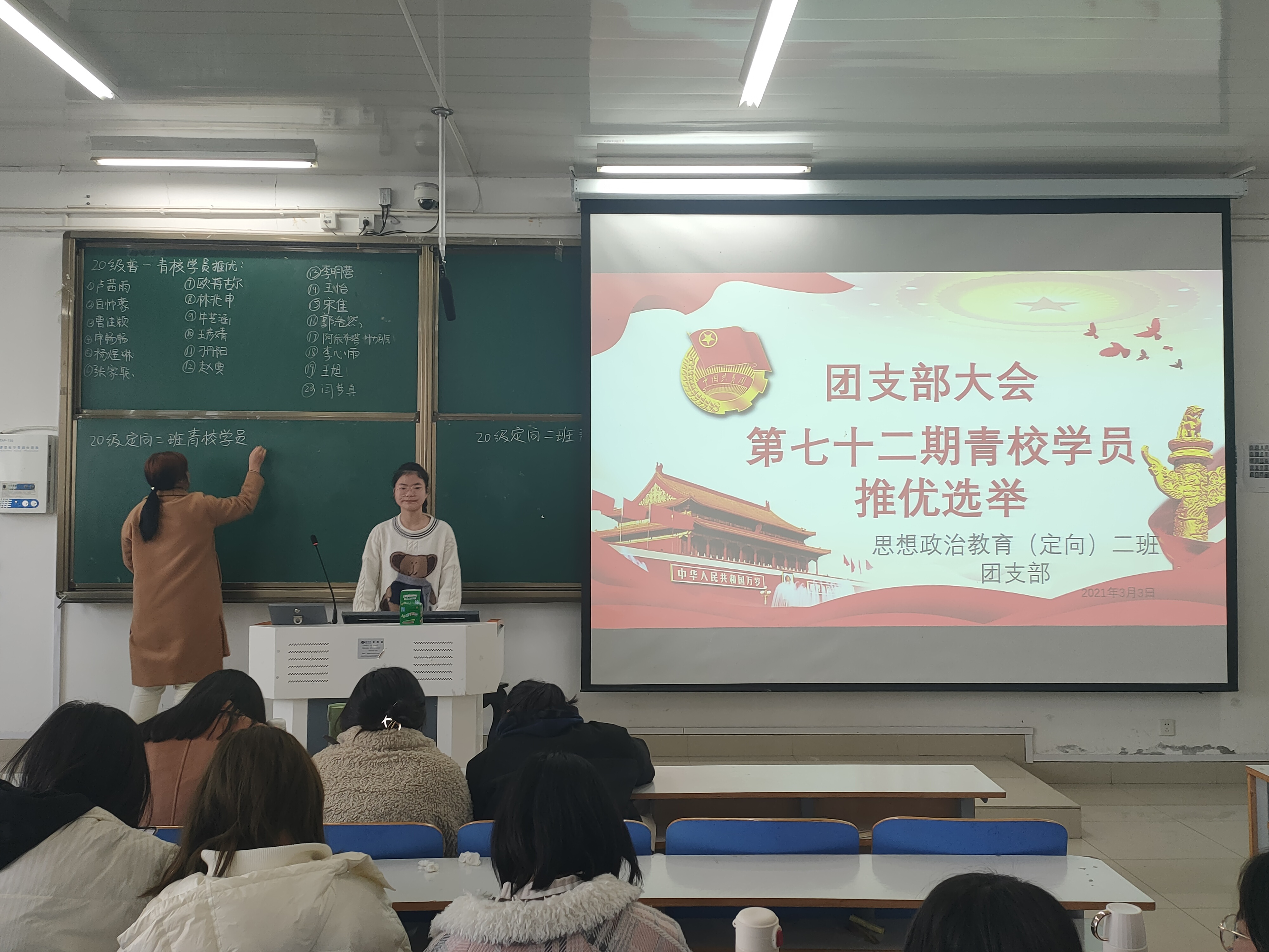 3月3日下午,sjb世俱杯网站2020级思想政治教育定向二班第72期青校学员推优选举团支部大会在社科楼516教室顺利召开。