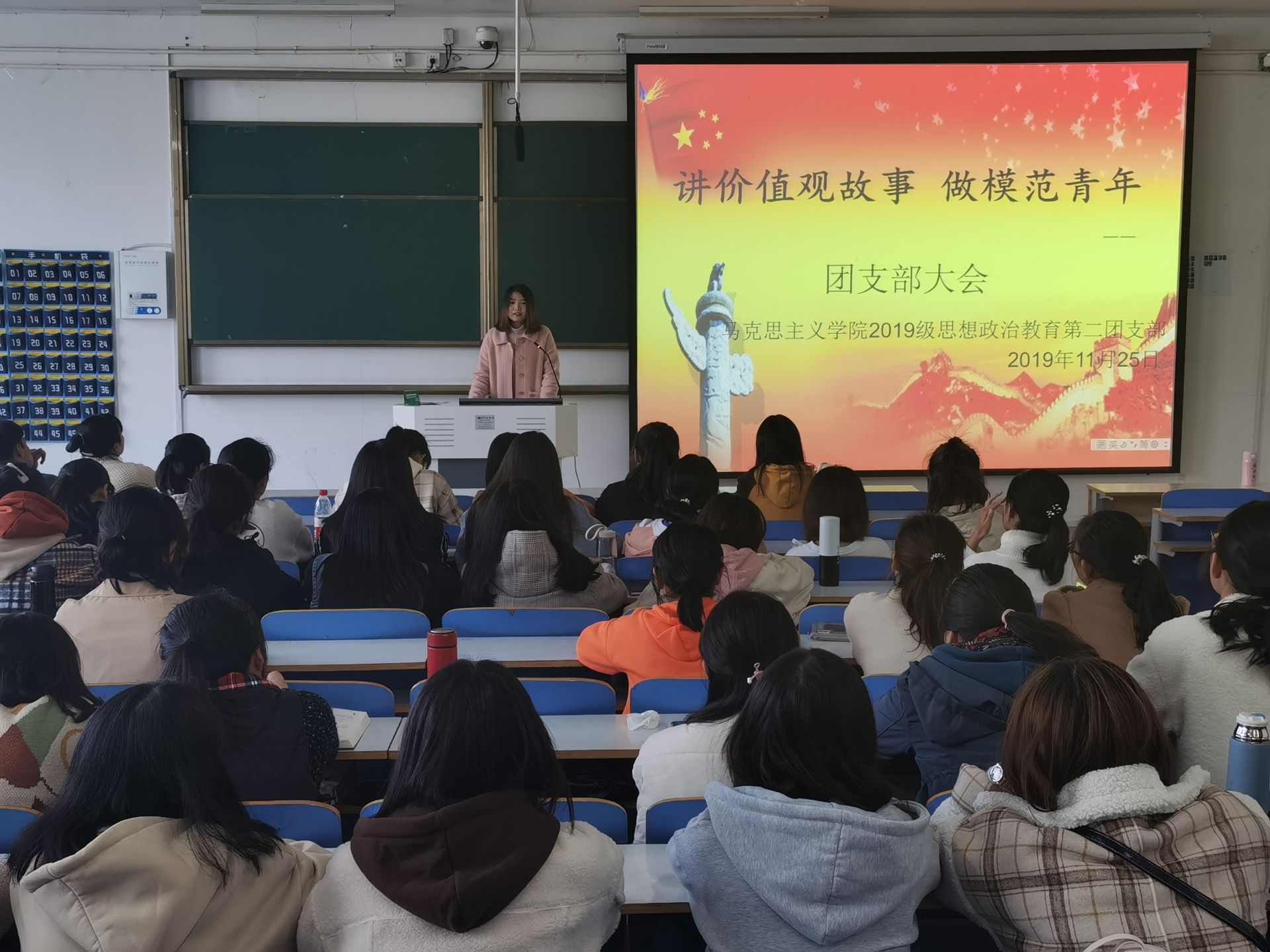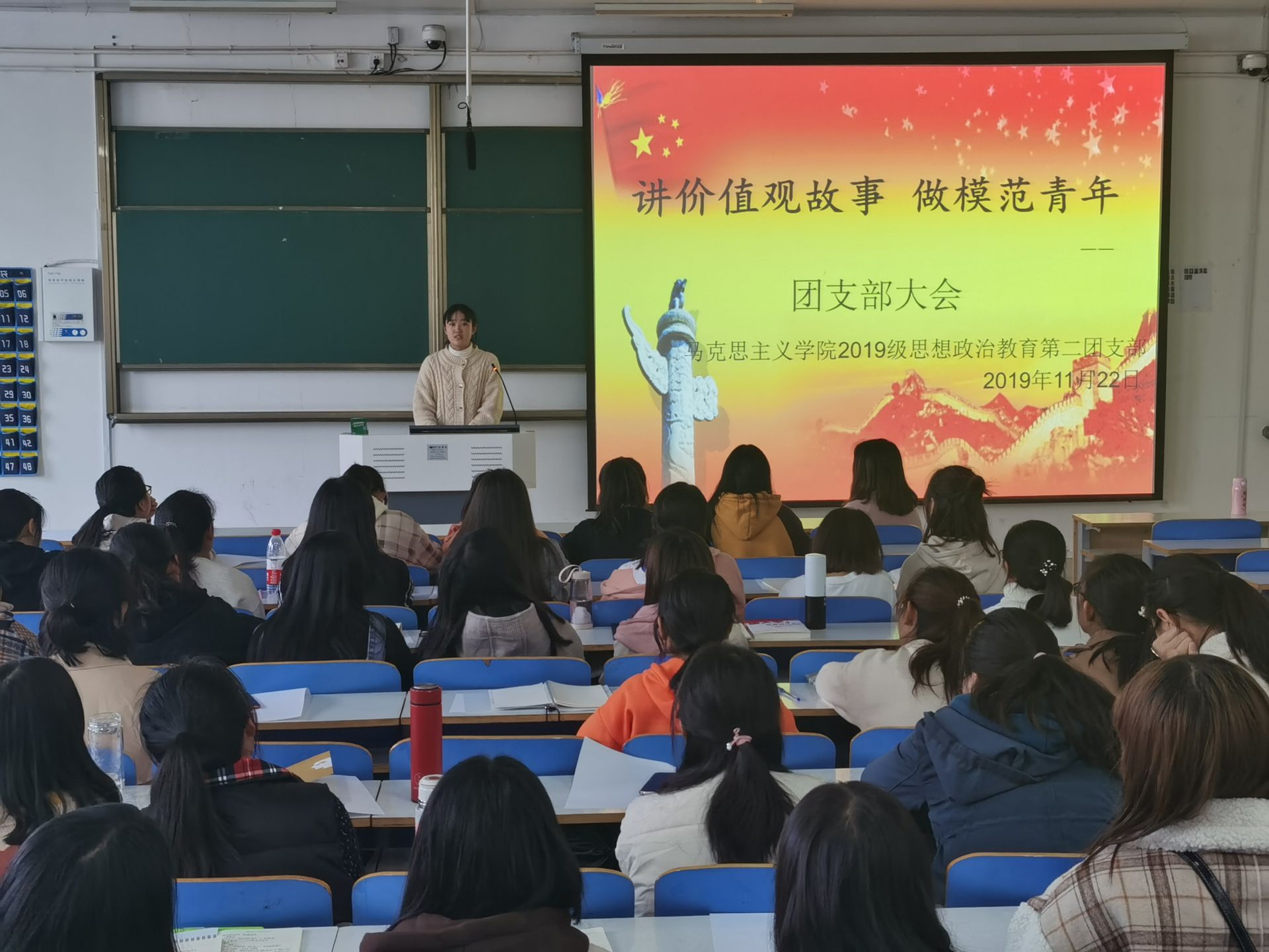 11月22日下午,sjb世俱杯网站2019级思想政治教育第二团支部在社科楼516教室顺利召开“讲价值观故事,做模范青年”团支部大会。团委老师陶青青及sjb世俱杯网站2019级思想政治教育第二团支部全体团员共同参会。会议由团支书孙雅娴主持。