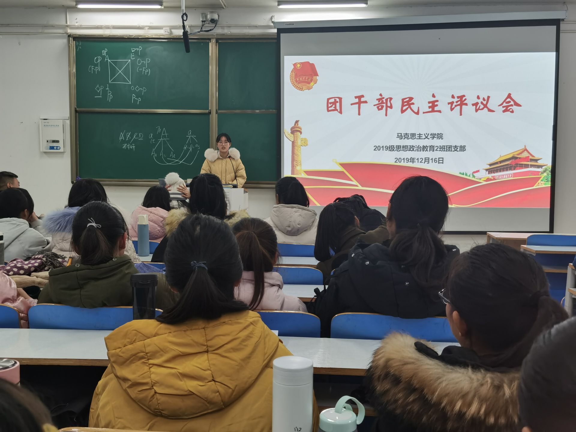 12月16日晚,sjb世俱杯网站2019级思想政治教育二班在社科楼514教室召开团干部民主评议会。会议由团支书孙雅娴主持。