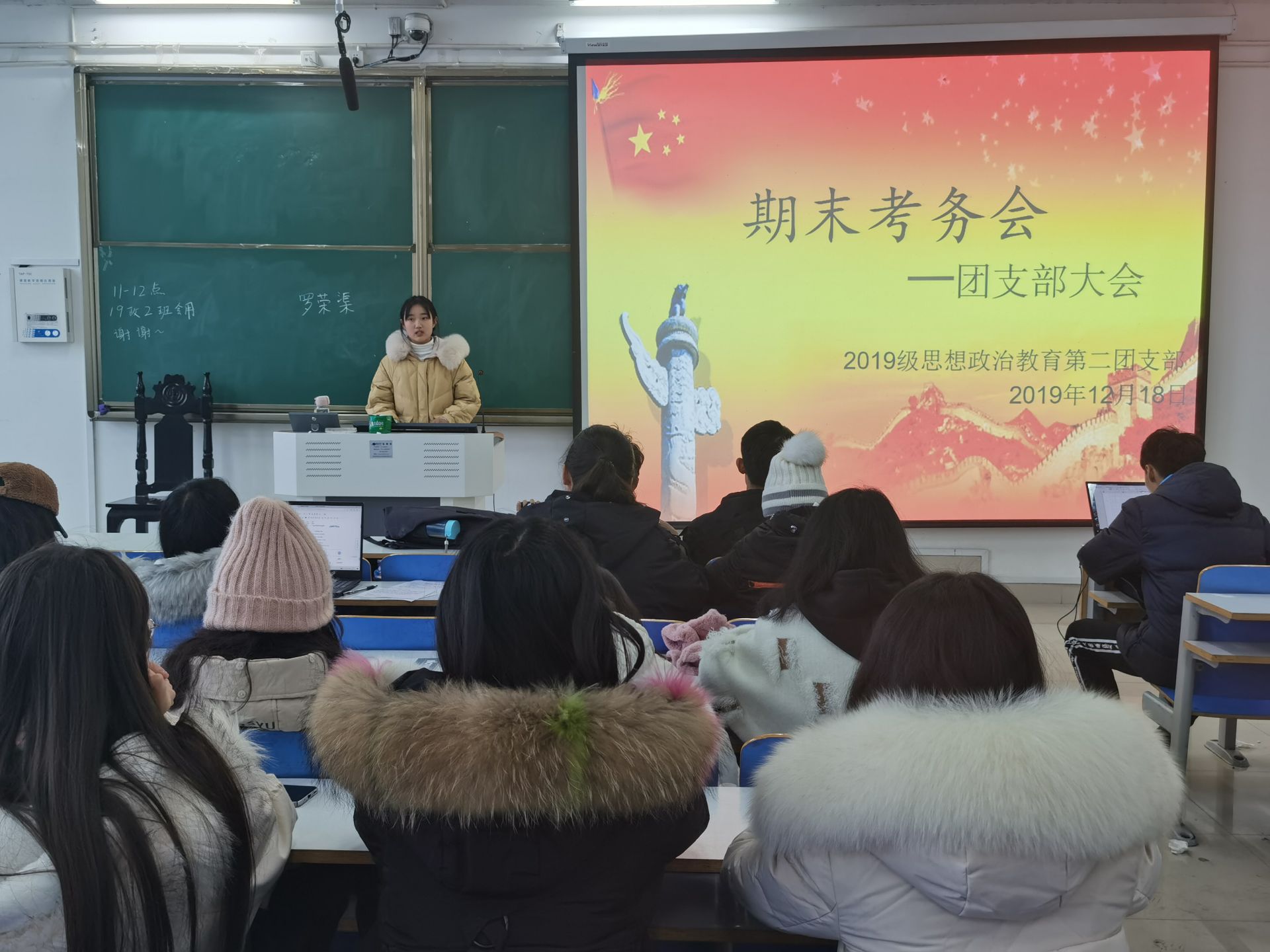 为严肃考风考纪、规范期末考试管理, 12月18日上午,sjb世俱杯网站2019级思想政治教育二班全体同学于社科楼514教室召开期末考务会。会议由团支书孙雅娴主持。