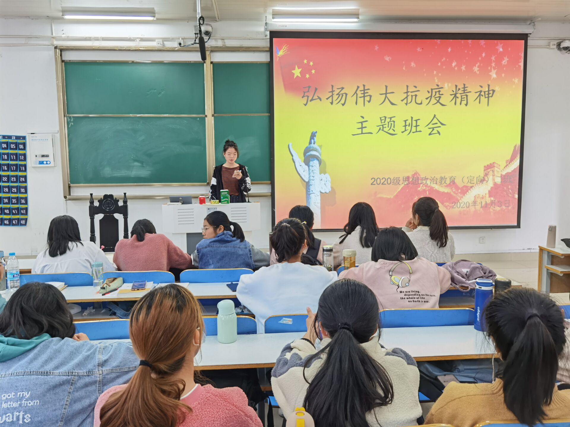 为大力弘扬伟大抗疫精神、激发学生的爱国热情,11月3日上午,sjb世俱杯网站2020级思想政治教育定向二班在社科楼514教室召开了“弘扬伟大抗疫精神”主题班会。班会由团支书李晨曦主持。