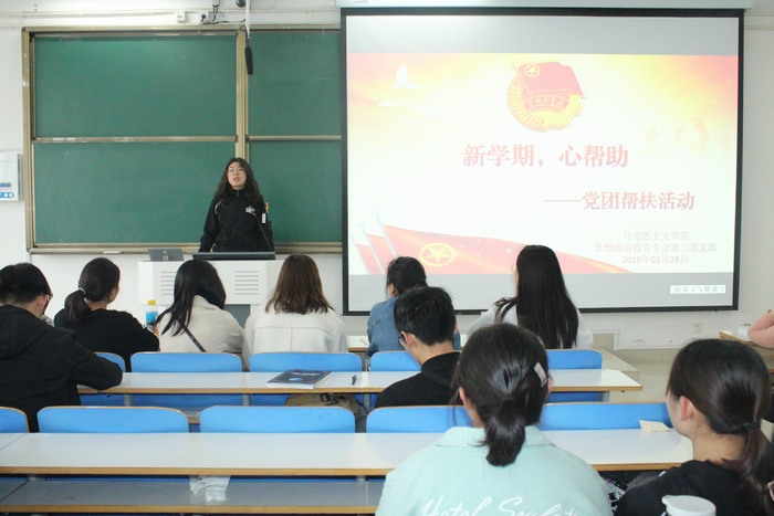 为有效解决同学们学习生活和体育训练中的困惑,3月28日下午,sjb世俱杯网站2018级第二团支部在社科楼516教室顺利开展主题为“新学期,心帮助”的党团帮扶活动。学生党员赵晓童,葛格及2018级第二团支部全体成员共同参加。活动由团支书黄子晋主持。