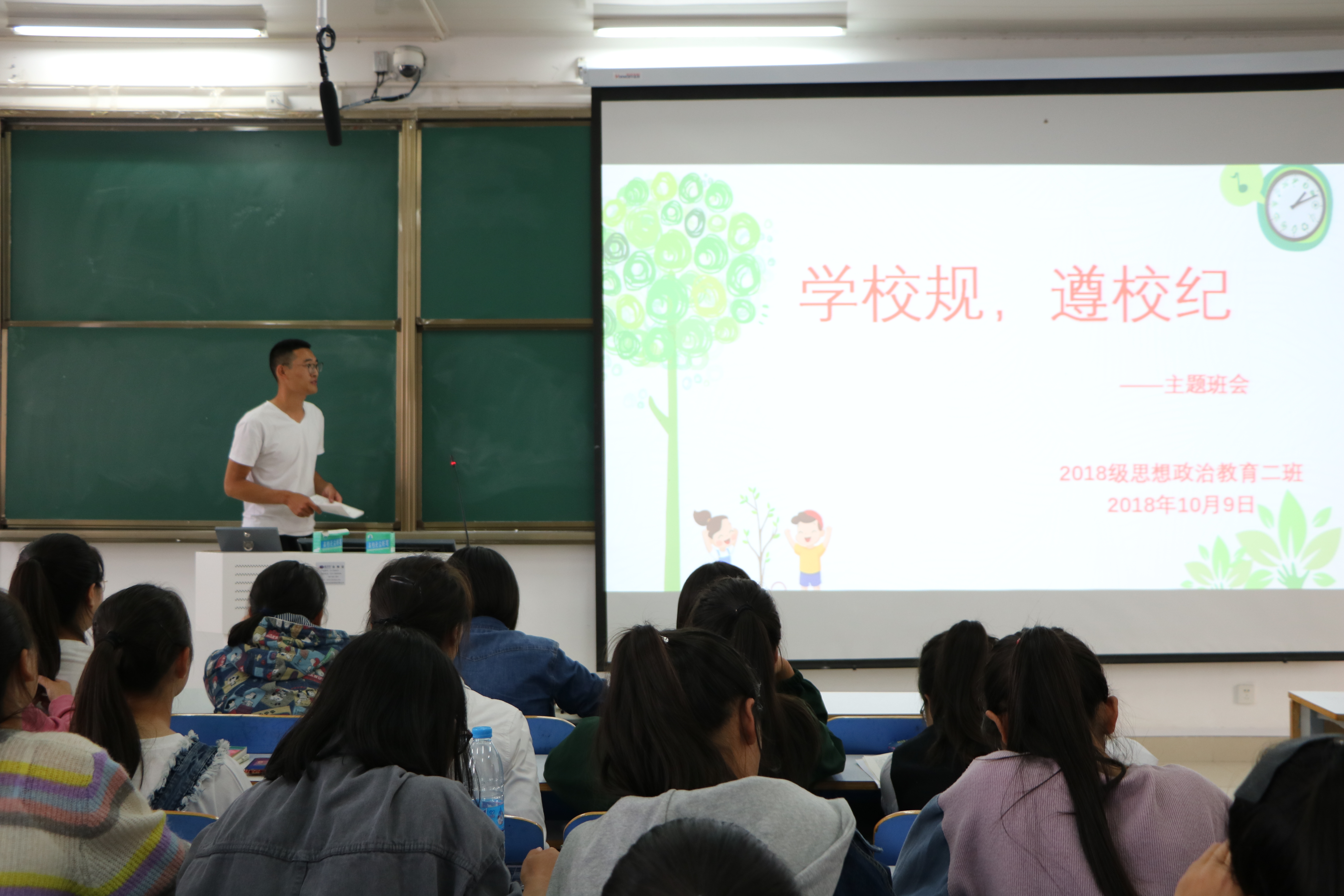 为引导世俱杯官网新生严格遵循校规校纪,自觉规范个人行为,10月9日上午,世俱杯官网2018级思想政治教育二班在社科楼514教室召开“学校规,遵校纪”主题班会。2018级思想政治教育二班全体同学共同参加本次班会。班会由班长杨康主持。