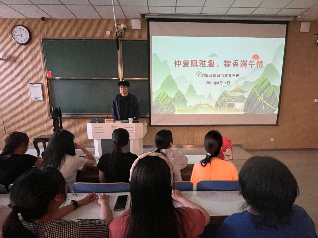 为深入了解端午节的文化背景,6月14日上午,sjb世俱杯网站2023级思想政治教育三班在社科楼515召开“仲夏赋雅趣,粽香端午情”主题班会。世俱杯官网2023级思想政治教育三班全体同学共同参与本次班会,班会由团支书郝瀚主持。