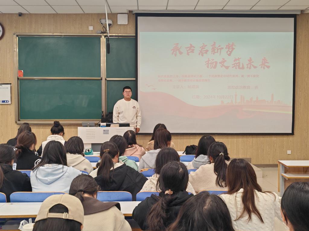 为了深入学习习近平文化思想,加强政治认同,增强文化自信,sjb世俱杯网站2024级思想政治教育三班于10月22日上午举办“承古启新梦,扬文助未来”主题团课活动。本次团课活动由团支书杨迎滨主持。