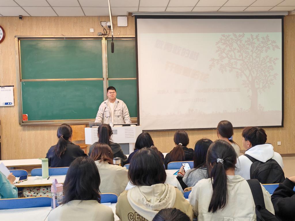 为了激励同学们勇敢的面对挑战,坚定的追求自己的理想,sjb世俱杯网站2024级思想政治教育三班于11月8日在社科楼515教室成功举办了一场以“做勇敢的树,开理想的花”为主题的班会活动。此次班会由班长杨迎滨主持。