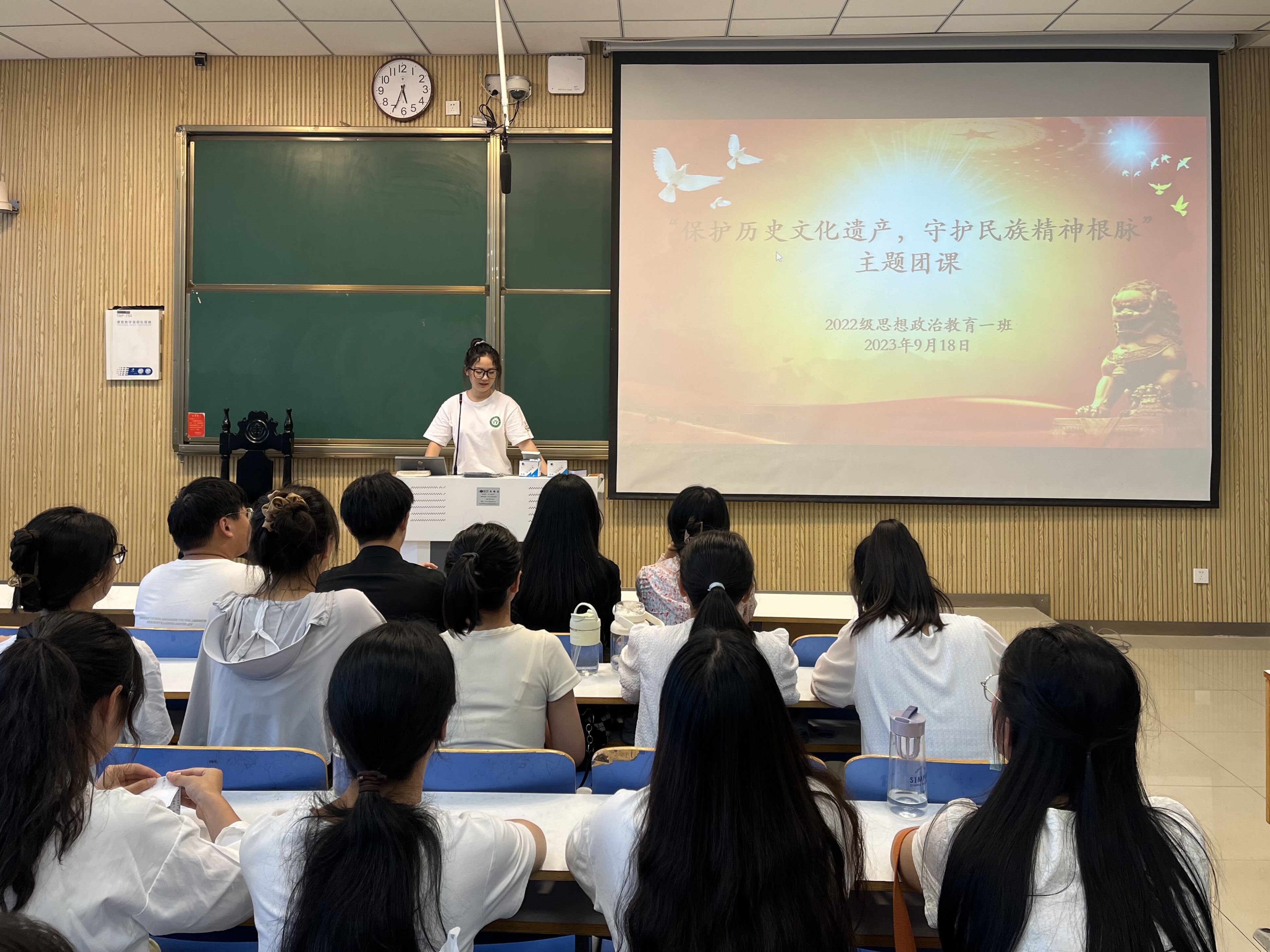 9月18日下午,sjb世俱杯网站2022级思想政治教育一班在社科楼514教室召开“保护历史文化遗产,守护民族精神根脉”主题团课。世俱杯官网2022级思想政治教育一班全体同学共同参与本次团课,团课由团支书李佳茹主持。