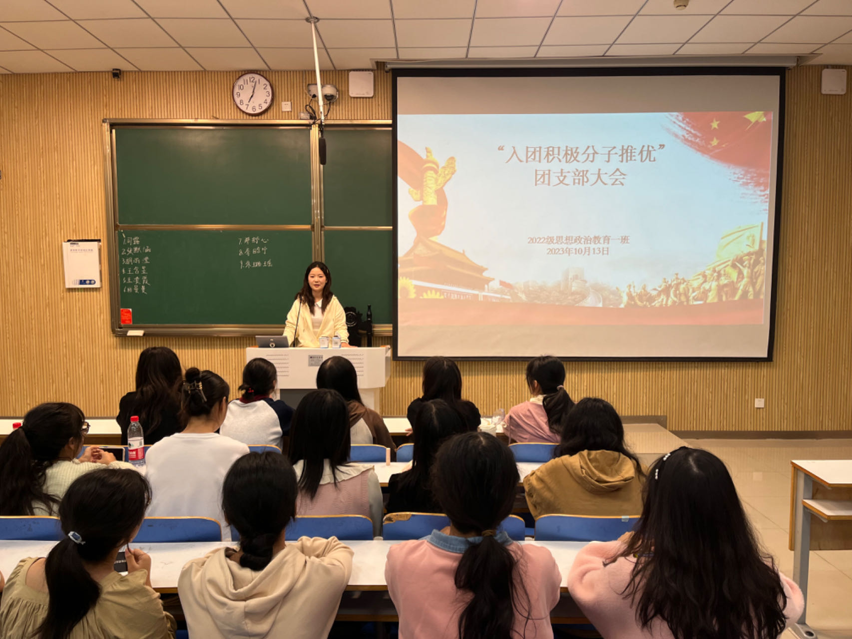 为加强学院共青团队伍建设,10月13日下午,sjb世俱杯网站2022级思想政治教育一班在社科楼515教室召开“入团积极分子推优”团支部大会。世俱杯官网2022级思想政治教育一班全体同学共同参与本次会议,会议由团支书李佳茹主持。