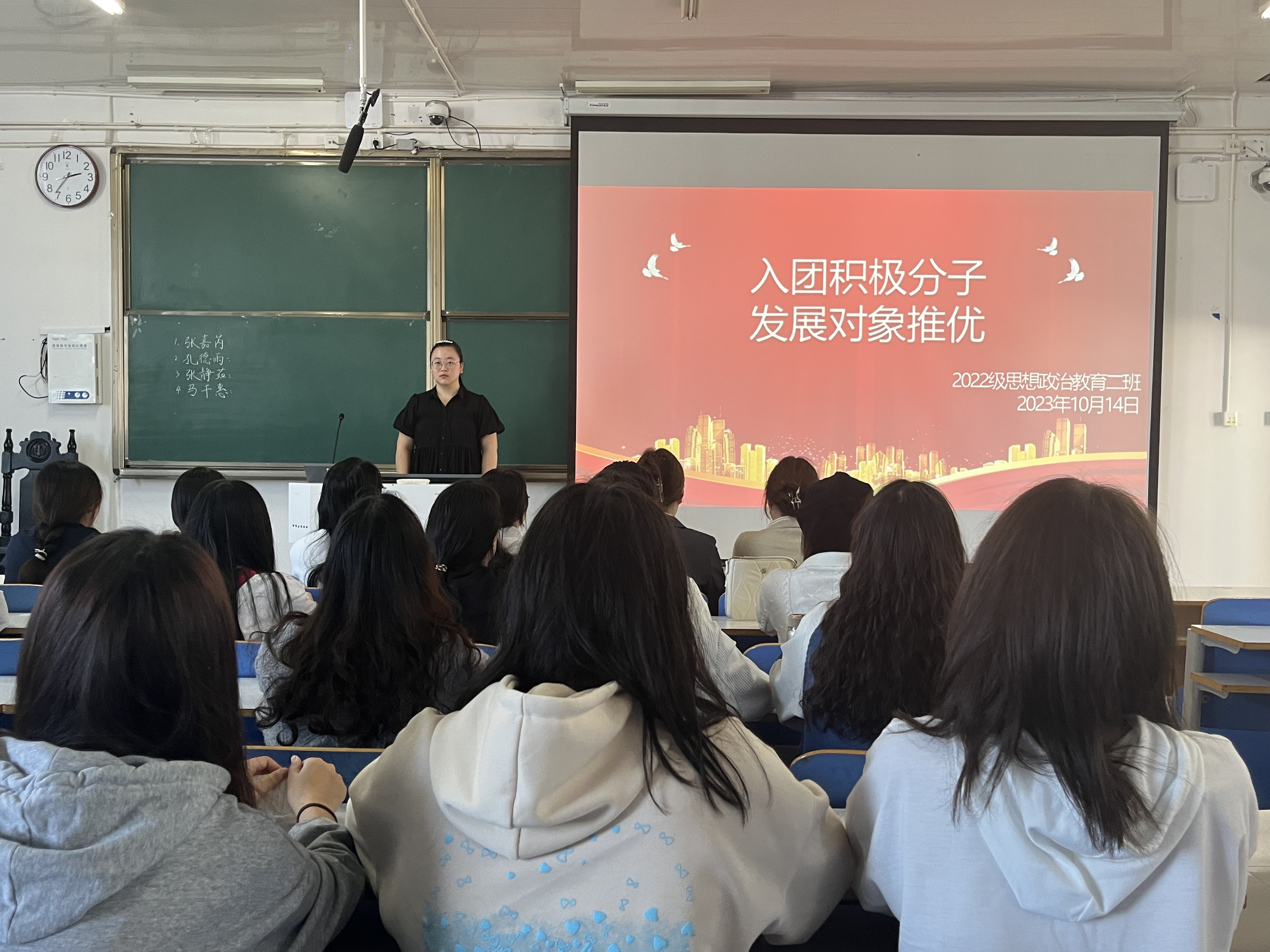 10月14日下午,sjb世俱杯网站2022级思想政治教育二班在社科楼514教室召开入团积极分子发展对象推优大会。世俱杯官网2022级思想政治教育二班全体成员共同参与此次推优大会。大会由团支书李佳音主持。