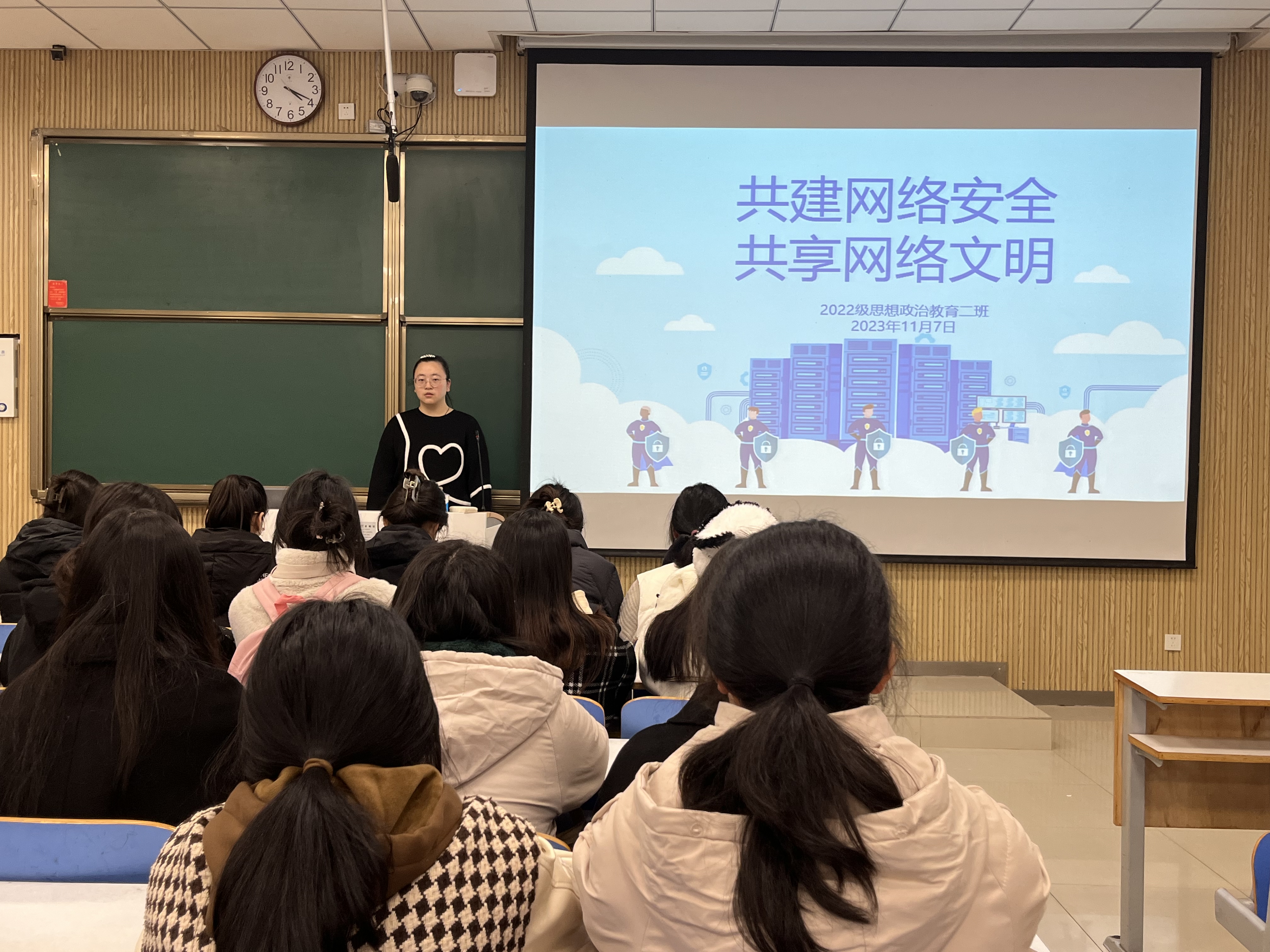 11月7日下午,sjb世俱杯网站2022级思想政治教育二班在社科楼515教室开展“共建网络安全,共享网络文明”主题团日活动。世俱杯官网2022级思想政治教育二班全体成员共同参与此次团日活动。活动由团支书李佳音主持。